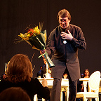 Великие стихи читают знаменитые драматические актеры Константин Хабенский и Ольга Литвинова. Читают по-новому, созвучно интонациям нашего времени, немного как бы свысока, отстраненно, словно не очень веря в искренность и правдоподобие текста (консерваторы, воспитанные на старых мхатовских образцах, в былые годы обильно ретранслируемых Всесоюзным радио, остаются несколько в растерянности). Особенно Хабенский усиливает слегка насмешливый пушкинский тон, что местами входит в непреодолимое противоречие с музыкой Чайковского – искренней, «иллюстрирующий» роман без тени сарказма или рефлексии. Несмотря на это, пушкинское слово очень важно: оно делает более понятным сюжет для неофитов, переключает их внимание, дает возможность отдохнуть от новых музыкальных впечатлений, смягчает адаптацию к неведомому или малознакомому жанру.