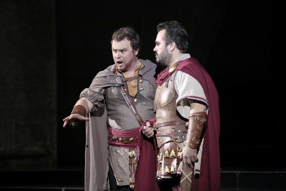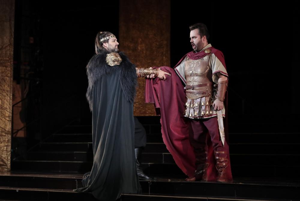 На следующий вечер на сцену вышел звездный состав во главе с Ильдаром Абдразаковым, в чьем исполнении счастливо сочетались масштаб личности, совершенное вокально-музыкальное качество и актерская выразительность. Лучшего Аттилу трудно представить. Но если Абдразаков выступал в заглавной партии десятки раз во многих постановках, то Василию Ладюку довелось прежде петь Эцио лишь в концертном исполнении. Его вокал был как всегда отменного качества, голос звучал мощно и уверенно, хотя и не без некоторого нажима. Все-таки на данный момент это – наиболее «крепкая» партия в его репертуаре, и ее еще предстоит немало шлифовать, дабы обрести ту абсолютную свободу, что отличает другие работы певца.