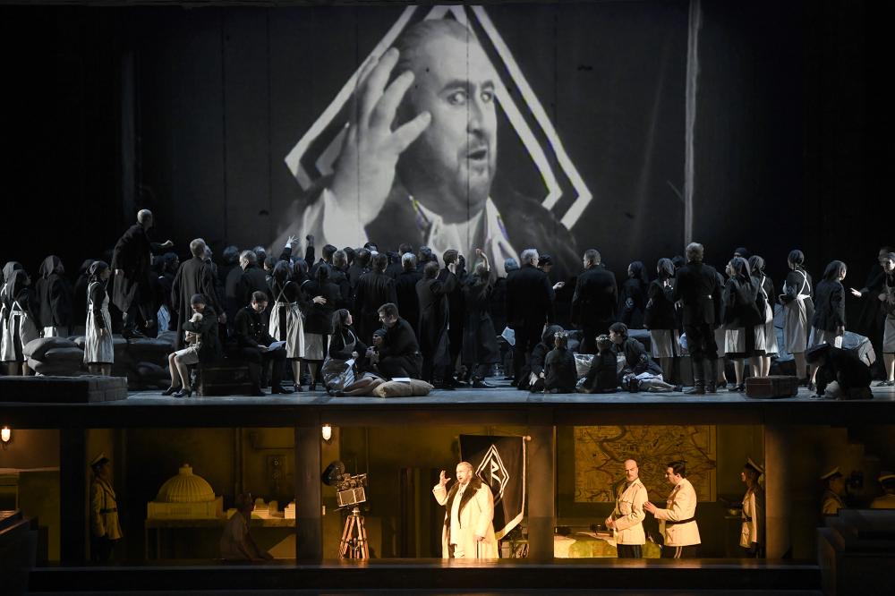 Аллюзии, которыми оперируют Филипп Штёльцль и его постоянный сорежиссер Мара Курочка в спектаклях Дойче Опер, несколько иного порядка. «Риенци» – своего рода политический памфлет на Муссолини и Гитлера, соединенных в образе титульного героя. Постановщики радикальны до предела, меняя смысл произведения едва ли не на 180 градусов. У Вагнера Риенци – фигура трагическая, прекраснодушный утопист, павший жертвой неблагодарности народа и собственной непоследовательности, что, впрочем, лишь до известной степени соответствует историческим реалиям. В спектакле же он превращен в демагога-диктатора, скрывающегося в своем бункере от гнева народных масс, чья жизнь в результате его правления стала только хуже. Борьба различных кланов против него и его реформ предстает здесь вполне правым делом. Каким-то образом все это удалось сделать не совсем уж вопреки музыке, подвергнув ее, правда, серьезным сокращениям. Спектакль лихо закручен, напоминая подчас остросюжетный фильм. И неудивительно: Штёльцль ведь больше известен как кинорежиссер и клипмейкер.