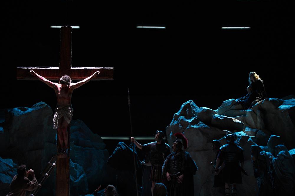 У спектакля есть, кстати, еще и пролог на музыке оркестрового вступления, как раз и являющий нам распятого Христа, еще живого, и взирающую на него Кундри. Антураж первого и третьего действий почти в точности тот же, как и в прологе: события, таким образом, начинаются и заканчиваются на Голгофе. А присутствие Кундри постоянно возвращает нас к началу, как бы говоря: вот во что выродились Христовы заветы в руках всякого рода догматиков, профанаторов и карьеристов.