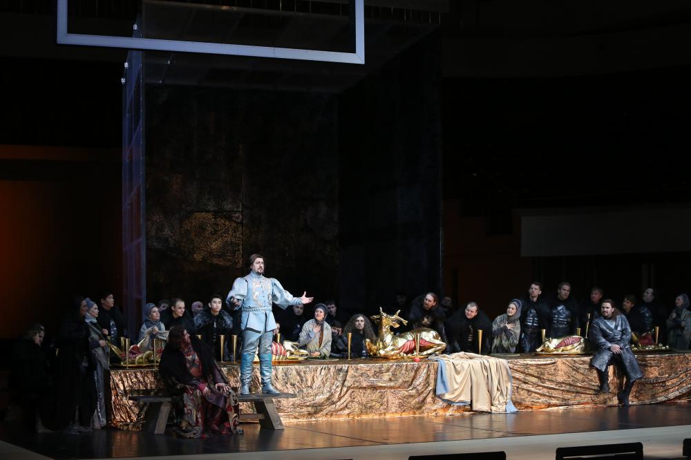 Теперь речь шла не о концертном исполнении и даже не о semistage (как «Очарованный странник» Р. Щедрина, представленный в этих стенах несколькими месяцами ранее), но о полнометражном спектакле. Поскольку давали его в рамках Пасхального фестиваля, в яме находился оркестр Мариинского театра, а за пультом стоял его шеф.