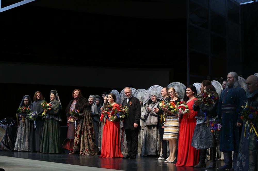 На фото: Л. Бустаманте – Любаша; Сцена из первой картины; сцена. В. Васильев - Грязной, А. Кикоть – Марфа; В. Гергиев и оркестр Мариинского театра; Поклоны после спектакля