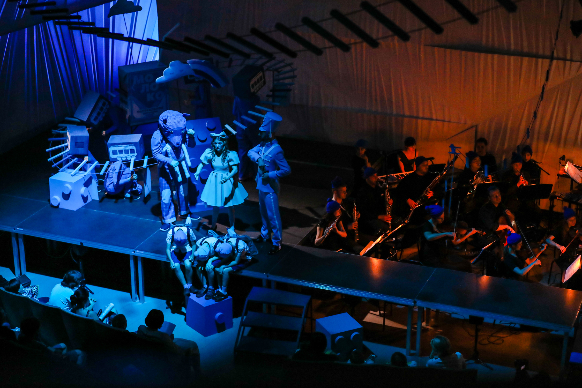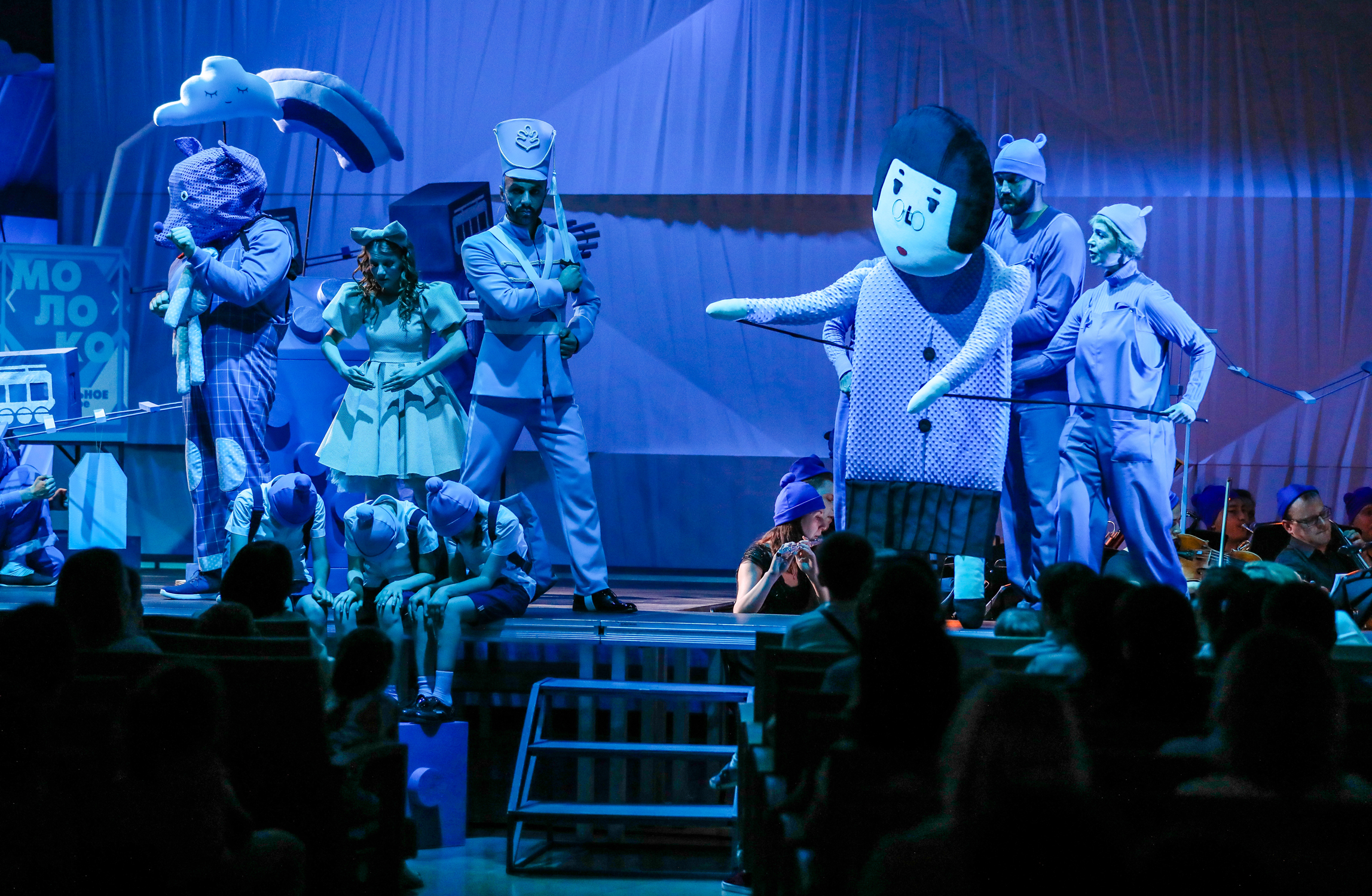 Наиболее удачными тогда показались две оперы – «Коллонтай» Эльмира Низамова и «Путешествие Голубой стрелы» Игоря Холопова (на его счету уже «Звероопера» в Театре Наталии Сац) – ученика Ефрема Подгайца, пишущего, как известно, преимущественно музыку для детей. Именно «Голубую стрелу» решили довести до полнометражной оперы, и 30 мая состоялась ее полноценная премьера.