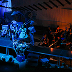 Партитуру мастерски собирает молодой маэстро из Большого Айрат Кашаев. Под его управлением ансамбль «Галерея актуальной музыки» звучит тонко и загадочно, прочерчены малейшие интонационные нюансы, ему очень качественно ансамблируют концертный детский хор «Феникс» ДМШ им. Танеева (п/у Е. Бессоновой) и Детский хор Камерной сцены им. Покровского Большого театра России (п/у Е. Озеровой). Дети-хористы не только слаженно поют, но и участвуют в действии, у некоторых даже – заметные пластико-драматические задачи.