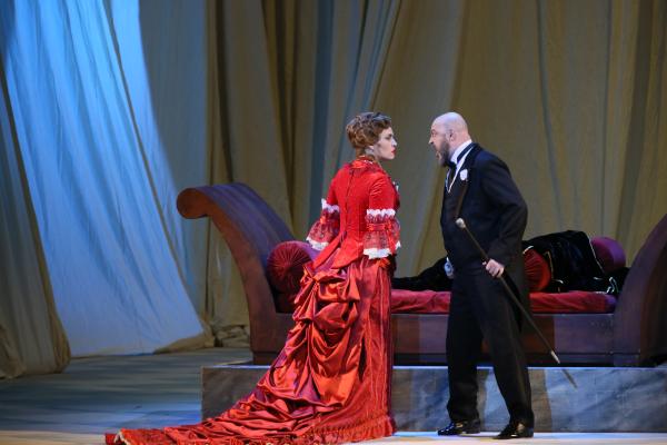 Понятно, почему это нужно режиссеру: чтобы на контрасте еще более высветлить образ главной героини. «Гулящая баба» Настасья – не просто приветливая и веселая хозяйка. Несмотря на то, что она владелица заведения с сомнительной репутацией, достоинства у нее – на столбовую дворянку, а учитывая перенос во времени (сценография Роберта Иннеса-Хопкинса и костюмы Татьяны Ногиновой), в героине можно угадать черты не то Анны Карениной, не то Настасьи Филипповны. Красивая, с великолепной осанкой и гибким станом, естественная в каждом движении и взгляде эта вдова, безродная сирота, даст фору самой императрице. Ее ум, проницательность, смелость – все, что заложено авторами в прекрасный образ, высвечено в предлагаемых обстоятельствах режиссером с необычайной силой. Его версия полностью оправдывает название оперы – у «Чародейки» есть героиня, смысловой центр всей истории.