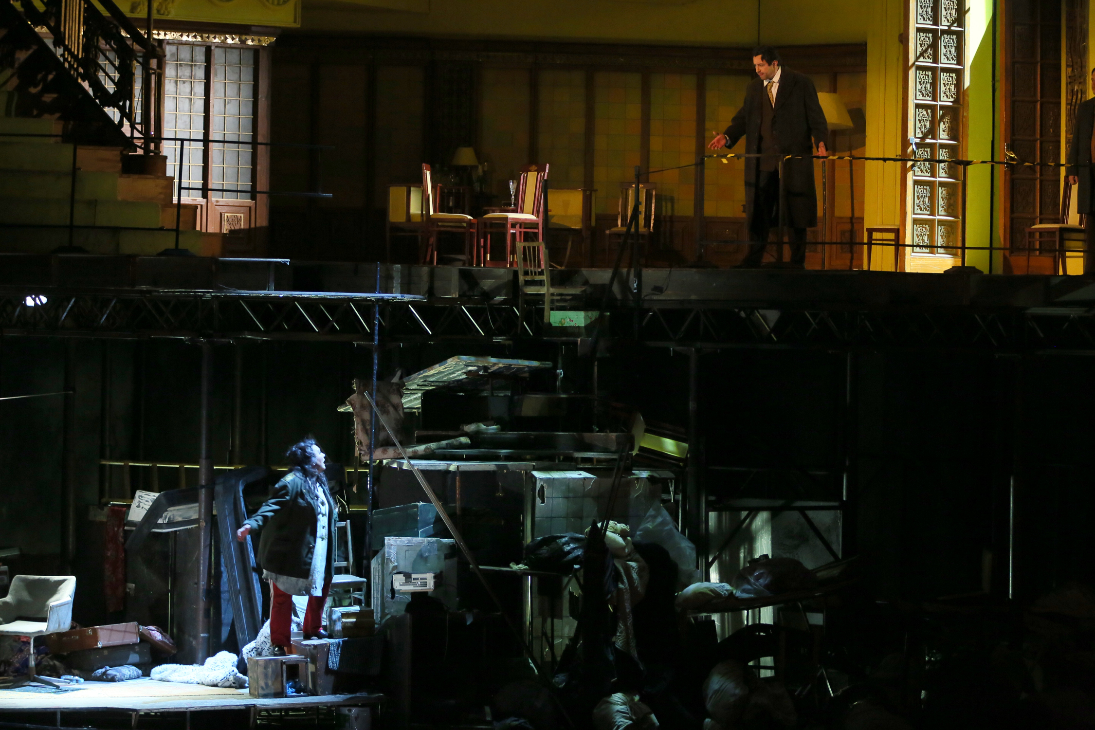 Это не отменяет грандиозных сложностей вокальных партий. Елена Панкратова удивила звучанием одновременно мощным и очень ясным, звуком острым, но не пронзительным, не теряющим округлости тона и благородства. Помню ее Леонору в «Трубадуре» примерно десятилетней давности: богатство материала и тогда впечатляло, но не вполне удовлетворяло владение голосом, особенно с точки зрения интонационной чистоты в верхнем регистре. Сегодня нет и тени тех проблем: безупречное пение экстра - класса, сфокусированный звук пробивной силы. Поразила также неутомимость артистки, ее колоссальная выносливость: циклопическая по объему и напряжению партия от первой до последней ноты была проведена так, будто ничего более естественного, как выпевать штраусовские экзерсизы, для Панкратовой не существует. Но и актерски титульный образ сделан очень точно – скупо и вместе с тем выразительно, без пережима (а музыкальный материал к этому, кажется, подталкивает). Ее Электра движется к финалу, железно зная, к чему стремится и как все должно произойти.