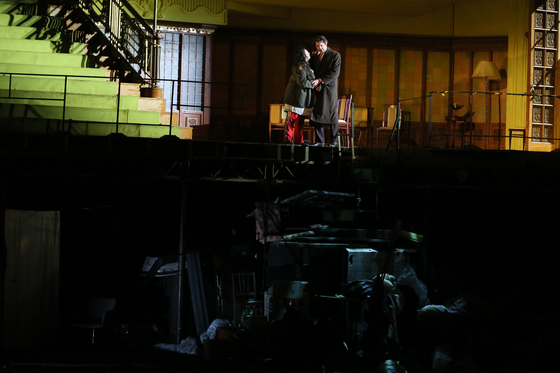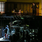Колоссальное напряжение, высочайший тонус партитуры оркестр под управлением Гергиева держал непрерывно на протяжении двух часов (спектакль идет без антракта). Сумасшедший драйв мог бы и утомить, если бы не удивительное сочетание плотности и прозрачности в оркестровом исполнении, позволившее солистам прозвучать без потерь. Ни на минуту не возникало ощущения борьбы певцов с оркестром за слышимость в зале – дирижер словно преподносил пение на ладони.
