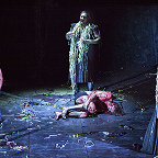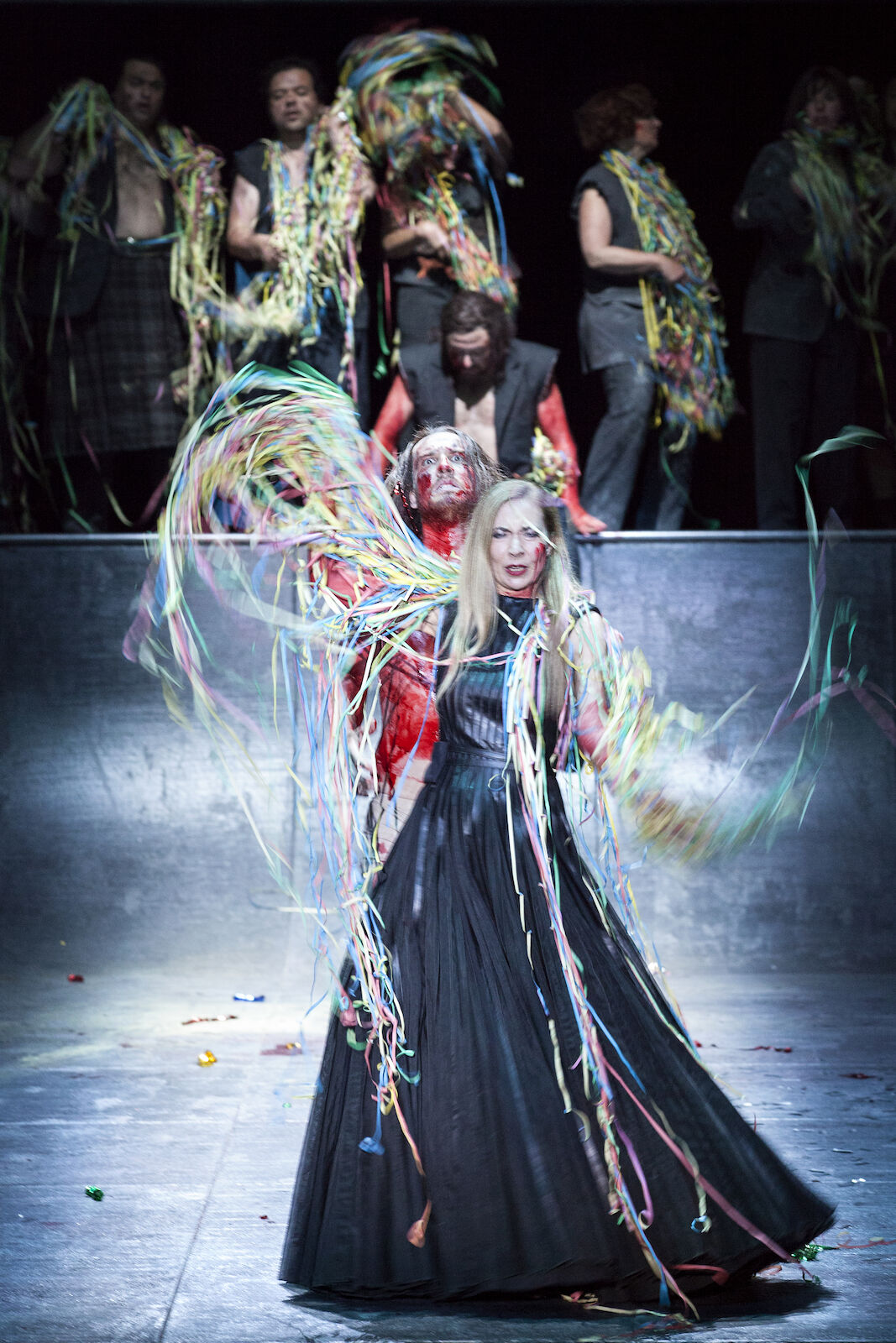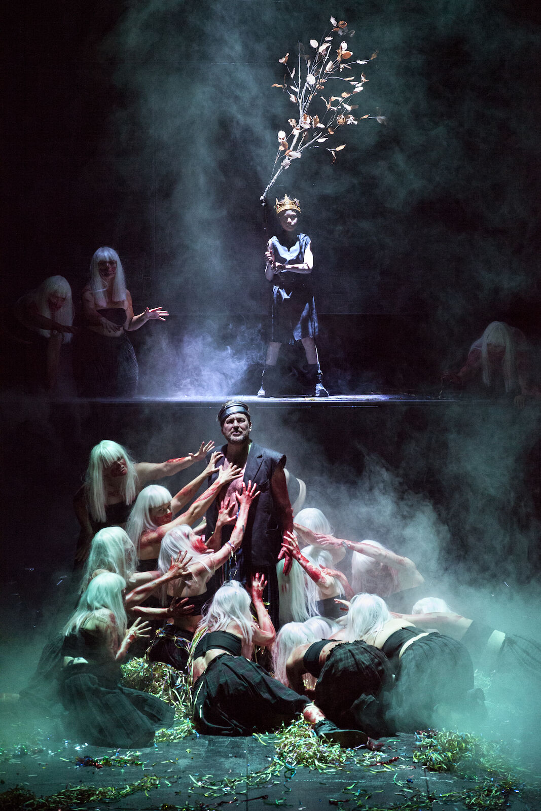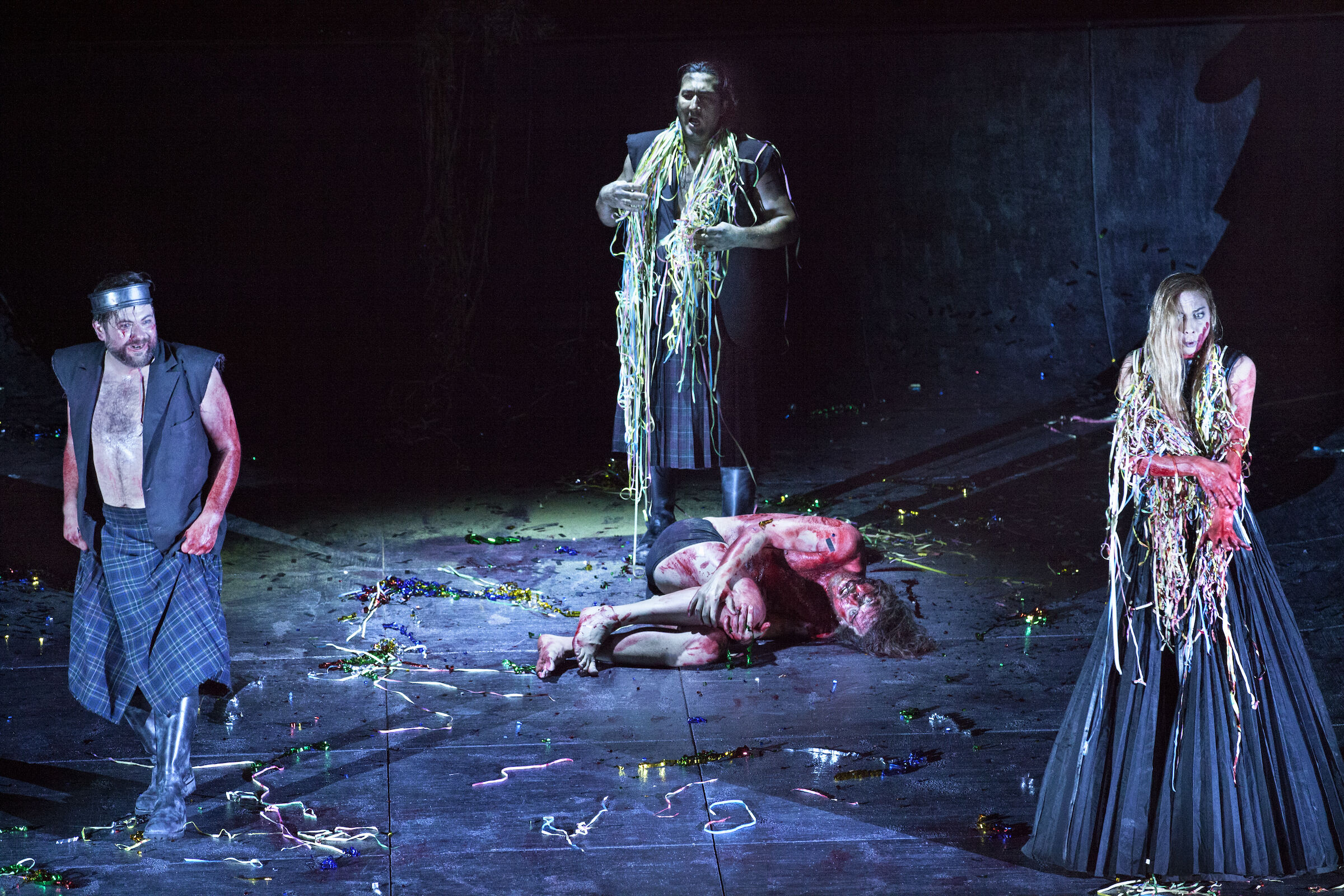 Брутально-кровавое, но абсолютно оправданное решение поддержано весьма высоким музыкальным уровнем премьеры. Оркестр и хор театра (хормейстер Ян Швайгер) под управлением маэстро Паоло Кариньяни сумели продемонстрировать не только высочайший профессионализм, но насытить оперу глубокими красками трагизма, разлить ощущение ужаса, обреченности и фатализма. Яркая экспрессия оркестровой игры при этом ничуть не затмила вокальные партии – все солисты были поданы очень достойно. В хоровом плане в этой опере, конечно, особая ответственность на женщинах, исполняющих партии ведьм: они и открывают действие, и вещают в ключевые, поворотные моменты. Мастерство женского хора Фламандской оперы подкупает – пение точное, стройное, маркатированно резкое и зловещее, порой почти шепотом, оно дает прекрасный образ шотландских норн, плетущих паутину судеб героев.
