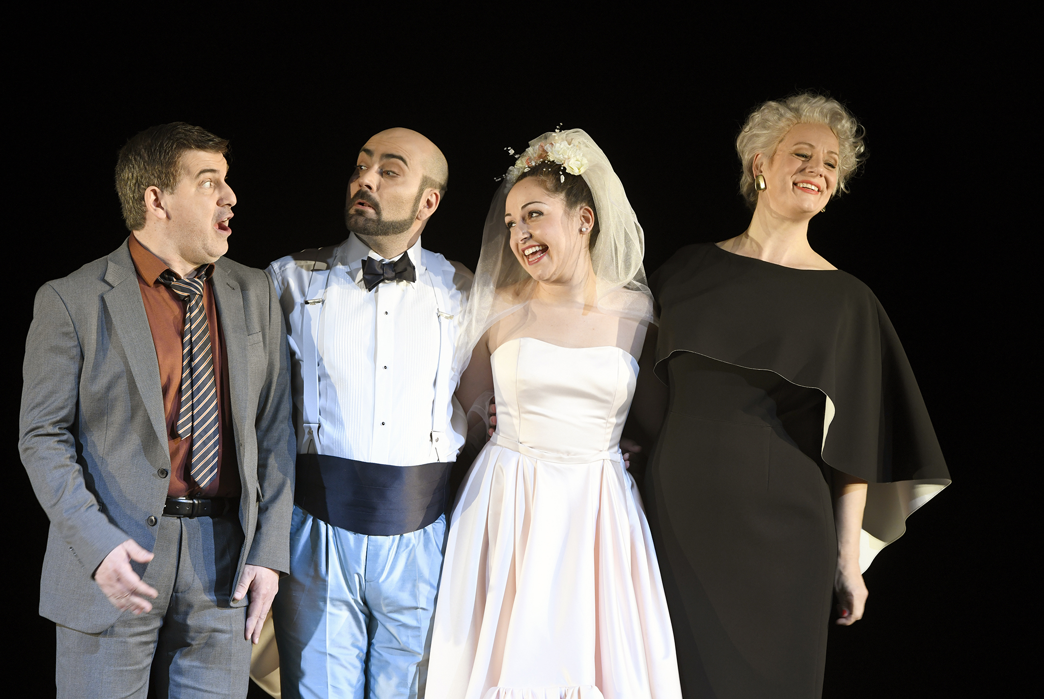 Вуппертальская «Свадьба» – совместная постановка с Английской национальной оперой: партнерство с одним из ведущих театров Великобритании делает честь не самому знаменитому театру Германии. Но музыкальные силы премьеры – полностью свои, и, может быть, не столь звездные, как в Лондоне, но весьма достойные. Самым слабым звеном оказался оркестр под управлением Джулии Джонс: начиная с вяло исполненной увертюры, он всю дорогу нет - нет да и «радовал» то нестройными унисонами струнных, то киксами меди, демонстрируя не высокую квалификацию. Между тем маэстрина проявила себя как вполне профессиональный дирижер – например, в чутком взаимодействии с вокалистами.