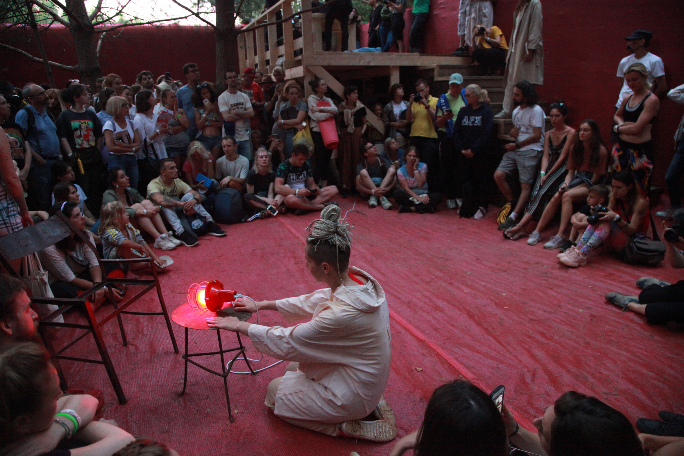 Curiosity была единственной оперой, показанной внутри арт-объекта (под названием «Ленивый зиккурат»). Другие если частично и задействовали то или иное закрытое пространство, сверху оно все равно оставалось открытым. Только в одном случае представление шло целиком на пленэре.