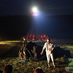По части зрелищности лидировали «Блуждающие огни» (композитор Адриан Мокану, либреттист Дана Жане, режиссер Ася Чащинская). Режиссура начиналась уже со снайперского выбора места – поляна между храмом и рекой, перед арт - объектом «Маяк», едва ли не самое красивое место в Николе - Ленивце – и