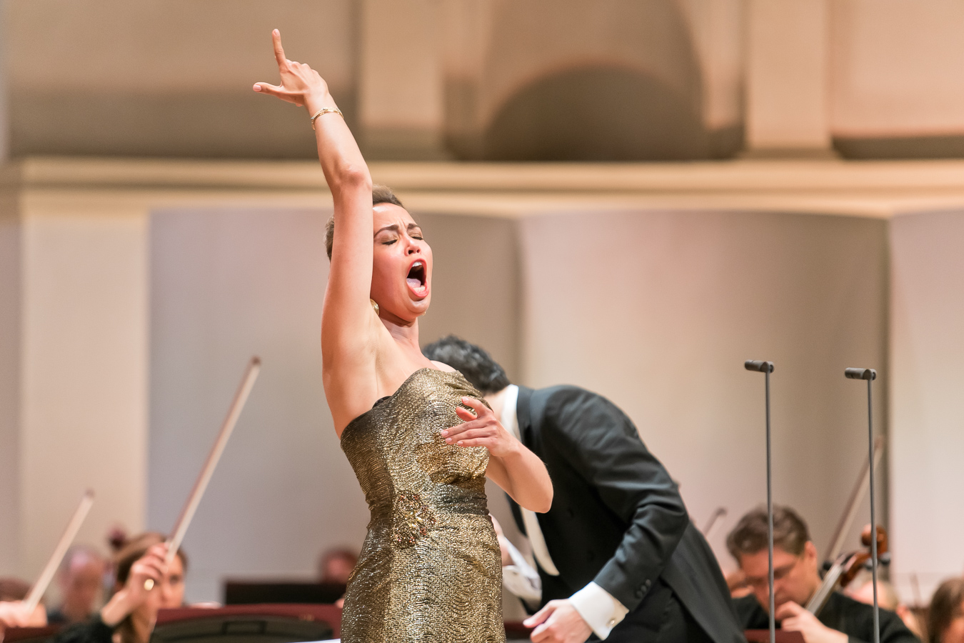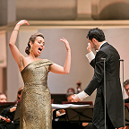 Надин Сьерра поет на многих из главных оперных сцен, выступает с прославленными партнерами. Она подчас даже может восхитить исполнением какого-то одного номера. Но когда речь идет о целой партии – например, Джильде в «Риголетто» (запись с прошлогоднего фестиваля в Оранже доступна в интернете), сразу замечаешь, что ее героиня радуется, страдает и умирает с одними и теми же интонациями. Ну а если в программе звучащие подряд номера из произведений разных композиторов и стилей, как было в КЗЧ?