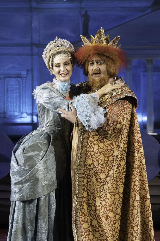 На фото: Cцены из спектакля; Царица Милитриса - Ольга Селиверстова, Царь Салтан - Денис Макаров