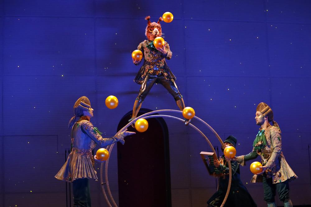 Зато там, где недодано взрослому, с лихвой получит ребенок, которому в этой постановке что ни сцена – то вожделенный чупа-чупс. Назвал композитор свою оперу «руководством к фокусам» – режиссер этими фокусами, точнее, цирковыми номерами, практически все симфонические эпизоды и расцветит. Бьются в небесах Лебедь и Коршун, выделывает головокружительные трюки в огромном колесе Белка, кувыркается высвечиваемый стремительным лучом то здесь, то там Шмель (которого изображают четыре акробата)… При этом каждый из номеров – верх эффектности и вкуса, что немудрено: над ними работал прославленный в цирковой среде балетмейстер и режиссер Евгений Шевцов.