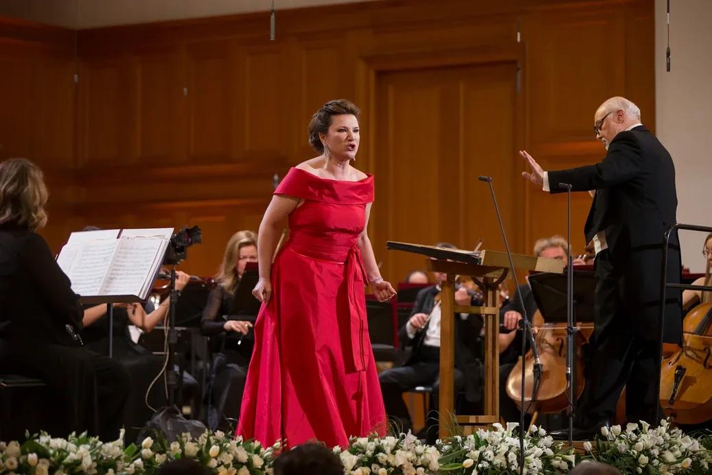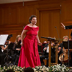 В то время как сопрано и тенор предлагали публике, как ни крути, оперные миниатюры, Е. Губанова решила положить слушателей на лопатки с помощью монументальных арий. Прозвучали речитатив и ария Леоноры из «Фаворитки» Доницетти, а также ария Иоанны из «Орлеанской девы» Чайковского. Но лишь количеством музыки без должного качества ее исполнения отправить слушателя в нокаут невозможно. Выраженную фактуру меццо-сопрано голос певицы никогда не являл, но даже его некогда «сопрановая яркость» сегодня однотонно матова. Что Леонора, что Иоанна, что русская опера, что итальянская (в данном случае итальянская версия «Фаворитки») – разницы не было никакой, и «пение нот» «пением музыки» так и не стало.