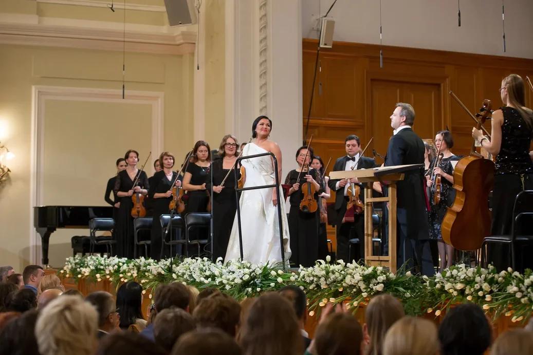 В концерте участвовал оркестр МАМТ им. Станиславского и Немировича-Данченко, место за дирижерским пультом поочередно занимали Константин Орбелян и Павел Клиничев. Помимо вокальных номеров прозвучали увертюра к «Набукко» Верди, два интермеццо (из «Сельской чести» Масканьи и «Федоры» Джордано) и «Танец скоморохов» из музыки Чайковского к драме Островского «Снегурочка».