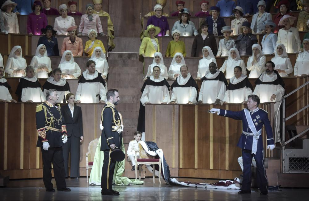 Представленный «Дон Карлос» – это возобновление постановки 2017 года, а точнее – реинкарнация оригинальной пятиактной французской (за выбросом балета) редакции оперы 1867 года в так называемую моденскую редакцию 1886 года, одобренную самим композитором. Нынешние пять актов в Париже – это четыре акта миланской редакции 1884 года с исключением первого акта «Фонтенбло» плюс акт, который в Модене маэстро вернул. А так как из узаконенной – едва ли не канонической! – миланской редакции кроме внесенных в нее изменений ряд моментов оригинальной партитуры Верди исключил, то именно их мы и не услышали.