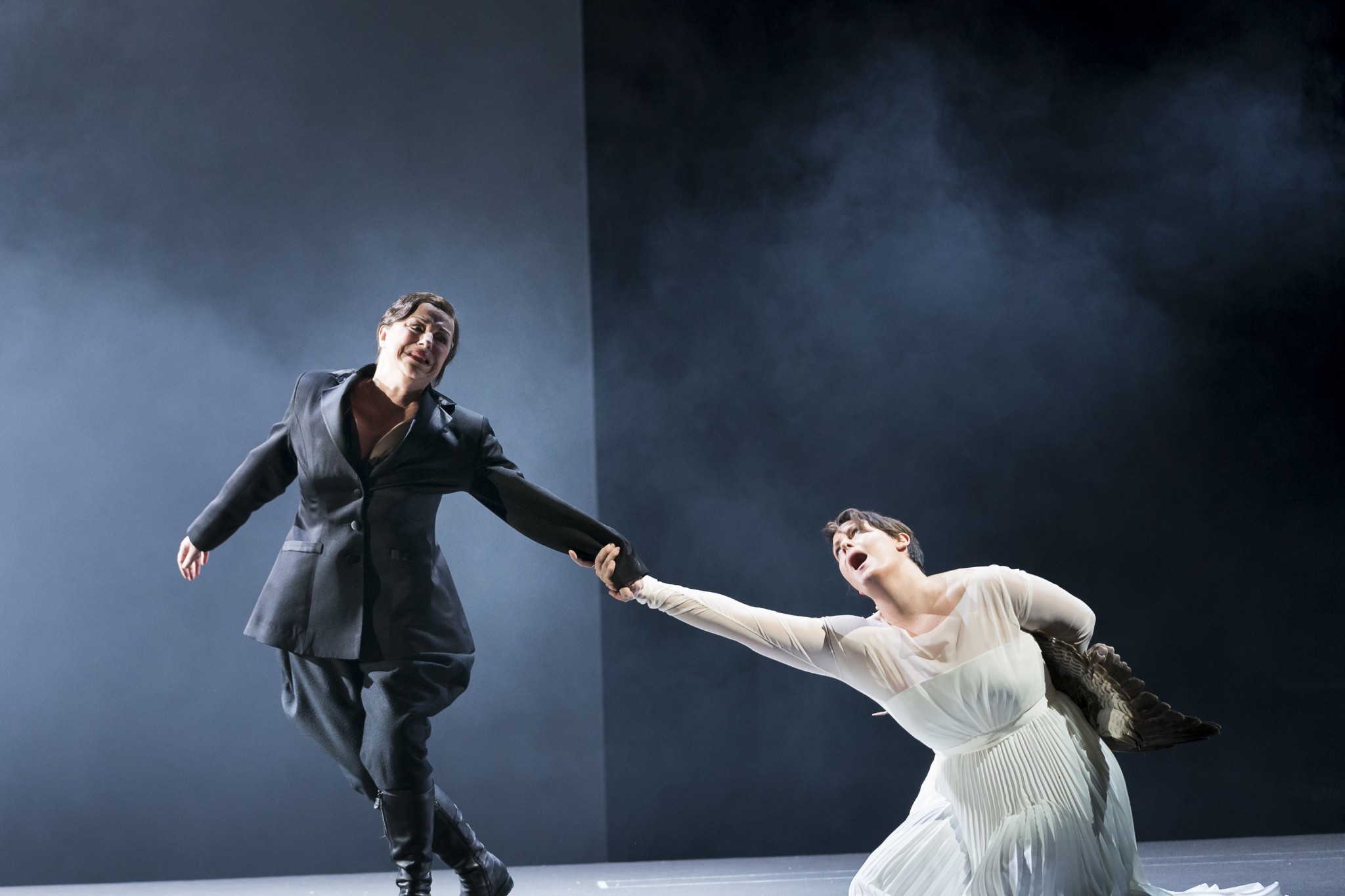 Кстати, визуально, все три венских спектакля очень темные – вне зависимости от сценической площадки и эстетических установок создателей. В «Волшебной флейте» это частично оправдано сказочным сюжетом, господством Царицы ночи в ряде картин и загадочностью мира Зарастро в иных. Однако в целом сценография Йохана Энгельса, скорее, утомляет и разочаровывает – пожалуй, для такого произведения не помешало бы больше фантазии и неординарных ходов. Лишь в сцене укрощения Тамино посредством игры на заветной флейте диких зверей темнота способствует созданию впечатляющей иллюзии, где маски животных с огромными рогами, клювами и крыльями приобретают черты реалистичности. Цивильные же костюмы (от Мари-Жан Лекка) большинства героев лишь сбивают с толку. Папагено – то ли бюргер, то ли крестьянин, у него не то что птичьего оперения нет, нет ни единой цветной ниточки в одежде. Моностатос отнюдь не черен, носит золотую перевязь и вообще вполне симпатичный малый – чего его так боятся Папагено и Памина, непонятно. Пожалуй, лишь постоянно меняющие облачения Три дамы вносят некоторое разнообразие – вопреки сюжету, именно они оказываются самыми симпатичными персонажами постановки.