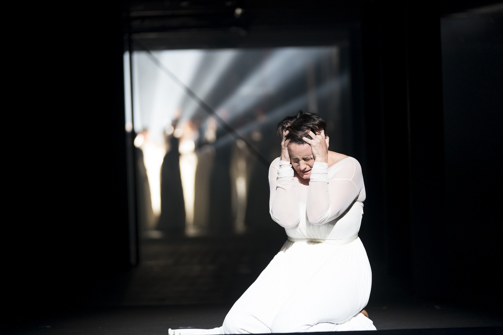 «Весталку» решено было представить оригинально – имеющей мало общего с либретто Виктора-Этьена де Жуи. Черная пустая сцена (сценография немки Катрин Коннан) – публике видны все ее внутренности с проводами, лампами и плунжерами – и абсолютно невыразительные современные повседневные костюмы (работа чилийца Хорхе Хара). В центре черноты – огромный белый неоновый куб, храм Весты; когда во втором акте действие переносится внутрь него, пространство кардинально меняется, становится тотально белым, а в центре «храма» возвышается статуя католической мадонны. Посыл режиссера понятен: роль религии как института несвободы и ограничений универсален, и не важно, кто на пьедестале, Веста или Дева Мария; по этой же причине и Верховный жрец облачен в одеяния католического кардинала. Попрание свободы, унижение человеческой личности, подавление индивидуального – темы, которые постановщики пытаются донести до публики. Казалось бы, жанр оперы спасения – самый подходящий для трансляции подобных идей, тем более что Спонтини когда-то говорил, что «в этой опере важнее не страстная любовь, а освобождение женщины от религиозной власти».