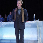 «Онегин» в Штаатсопер был поставлен в свое время в расчете на таланты Анны Нетребко и Дмитрия Хворостовского: пожалуй, только такие харизматичные артисты и способны вытянуть на себе этот темный и невыразительный спектакль. Все семь картин проходят в кромешной темноте на пустой сцене (художник – Катрин Гофман, свет – Карстен Сандер): северной ночью постоянно идет снег, к ларинскому балу уже образующий то тут, то там изрядные сугробы. Лишь на греминском балу снегопад прекращается, а темное пространство украшено огромными панелями, словно выложенными кристаллами Сваровски. Финальная картина вновь возвращает «во владения Снежной королевы». Костюмы «великосветских персонажей» Мартина Кремера – неопределенного периода прошлого века – больше пригодны для концертного исполнения, но не для спектакля. Оригинальностью отличается лишь образ Трике, загримированного под Карла Лагерфельда, – публику этот факт изрядно веселит.
