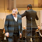 А следом – сцена смерти Бориса Годунова из оперы Мусоргского (в этой партии Терфель выступал не так давно на сценах Ковент-Гардена и Дойче Опер). Перед нами предстал выдающийся трагический артист, ко всему еще и поющий на чистом русском языке, почти без акцента, с ясно и четко артикулируемым каждым словом.