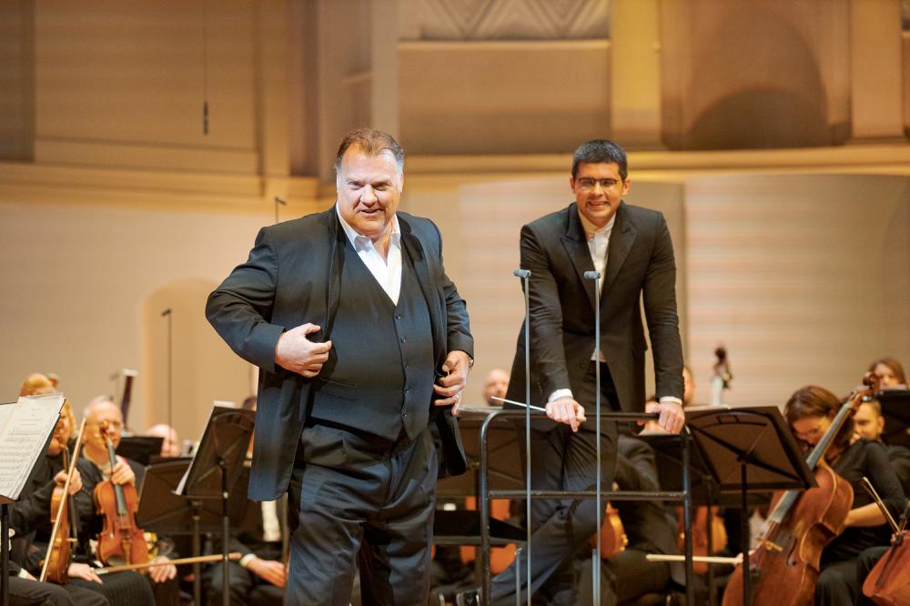 Концертами мировых звезд слушатели Московской филармонии не обделены, но если говорить о вокалистах, самые крупные из них выступают, как правило, в других залах и по неподъемным для обычной публики ценам за билеты. Ни Чечилию Бартоли, ни Йонаса Кауфмана, ни Хуана Диего Флореса, не говоря уже о Пласидо Доминго, в КЗЧ мы не слышали, а Анна Нетребко в филармоническом концерте появлялась последний раз более десяти лет назад. Но вот приехал Брин Терфель, входящий в самую что ни на есть элиту мировой оперы.