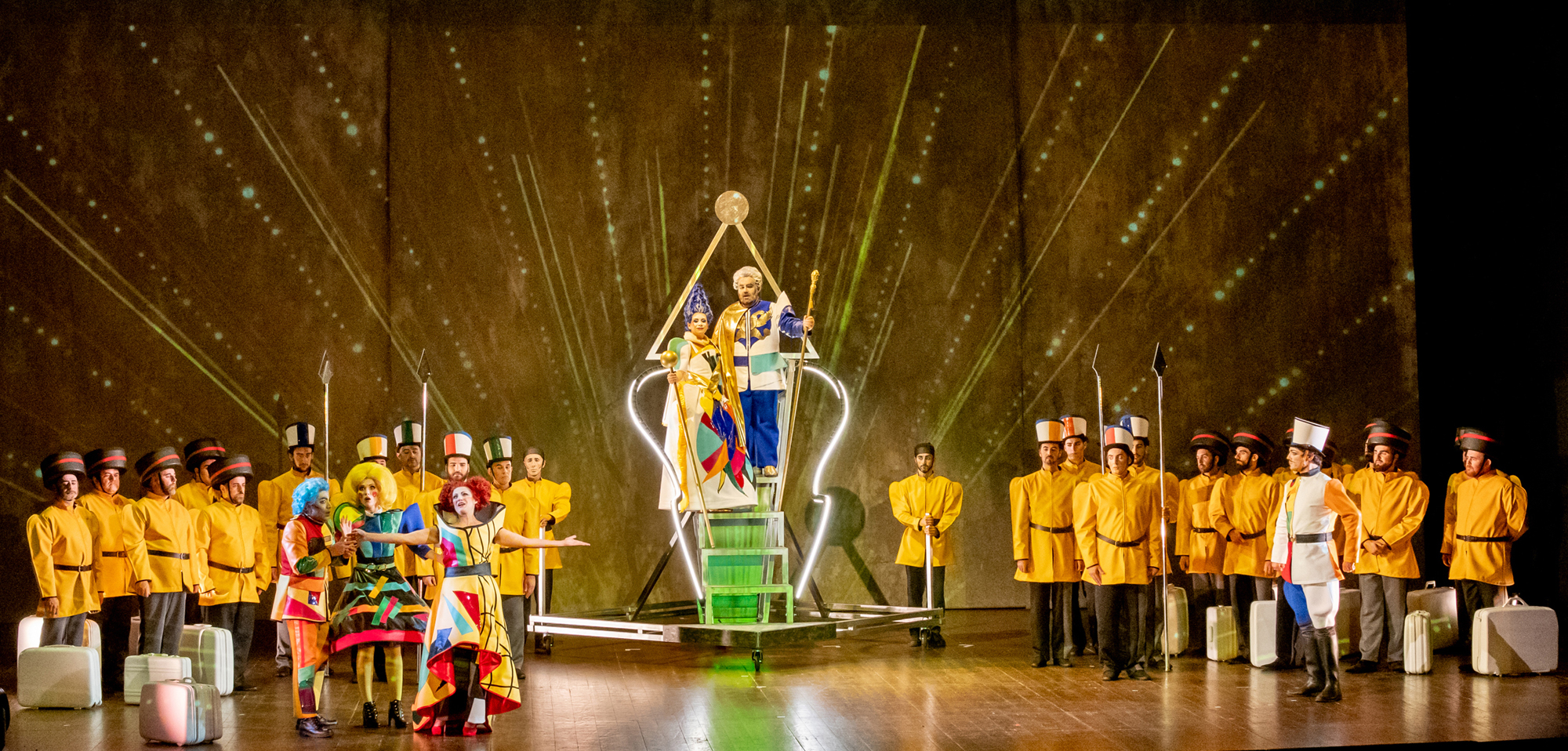 Юношеская опера Доницетти «Петр Великий» оказалась, мягко говоря, не самым сильным звеном в фестивальной программе. В начале нынешнего столетия ее вытащил из забвения Юрий Александров, поставив у себя в театре «Санктъ - Петербургъ опера». Шедевром это произведение и тогда не показалось, но благодаря талантливой постановке, выдержанной в юмористическом ключе, и значительным купюрам, впечатление в целом было хорошее. В Бергамо, понятное дело, оперу исполнили целиком, а это – почти три часа не самой интересной музыки. Как и в более раннем «Генрихе Бургундском», представленном здесь в прошлом году (https://gazetaigraem.ru/article/1419), опера написана по россиниевским лекалам и с откровенным подражанием его стилю. Но в «Генрихе» это было сделано вдохновенно и изящно, тогда как в «Петре» мы подобных качеств, увы, почти не находим. Все время ощущается, что откровенно идиотское либретто композитора нимало не вдохновило, и он буквально выжимал из себя музыку. О том же, что персонажи, выведенные под именами Петра, царицы Екатерины и других якобы наших соотечественников, не имеют ни малейшего отношения ни к своим историческим прототипам, ни к России вообще, можно и не говорить.