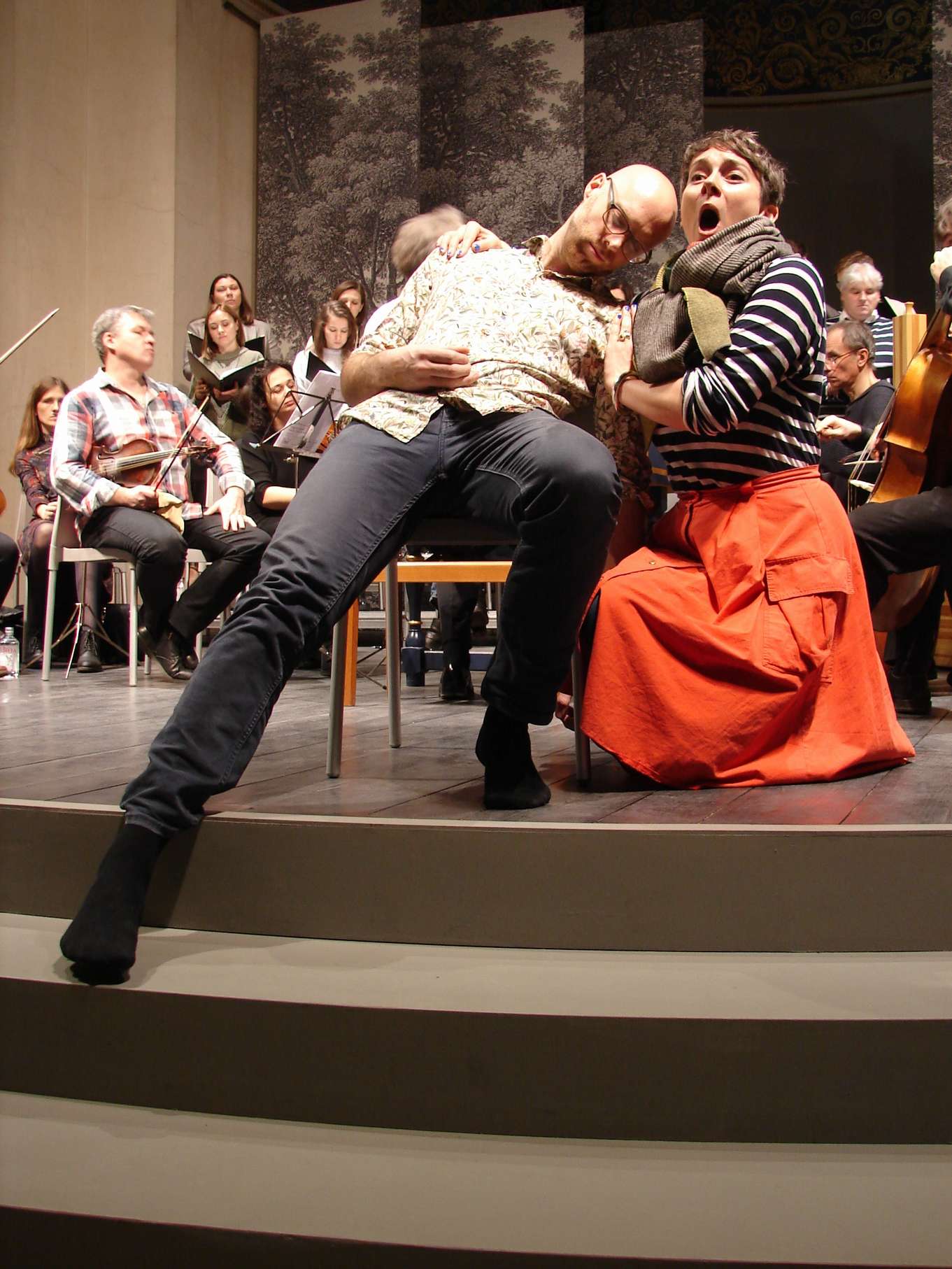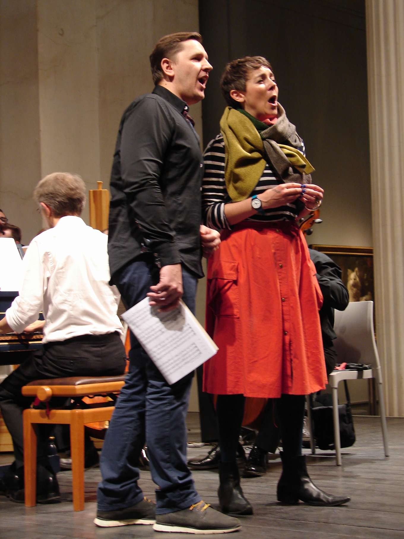 В центре действия – нежные античные любовники, мастерски исполненные чувственным сопрано Анны Дэннис (Венера) и благородным баритоном Джонатана Селлза (Адонис), их оттеняет бесплотный голос контратенора Юрия Миненко (виновник их страсти Купидон). Кстати, на мировой премьере в Лондоне (опера писалась для придворных увеселений Карла II) все партии (включая пастухов и охотников), кроме Адониса, исполнялись дамами: как ни удивительно, но даже тогда в Англии, богатой традициями балладного пения, композитор предпочитал в опере слышать полноценный женский вокал, а не фальцетное звукоизвлечение.
