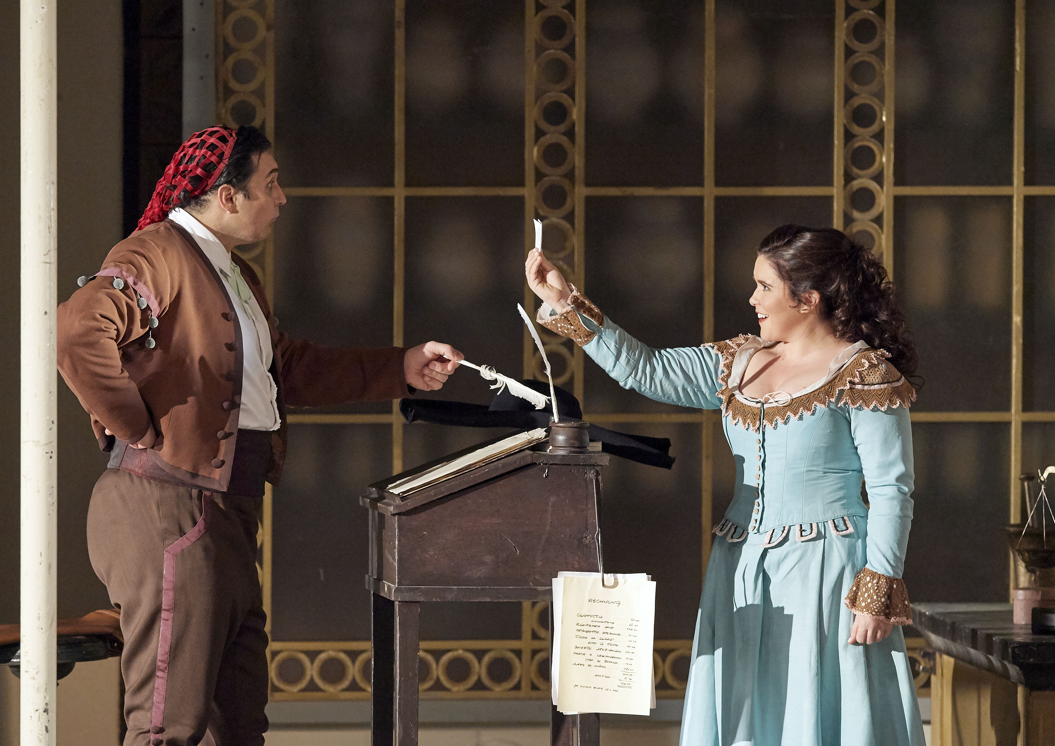 В цехе низких мужских голосов дела обстояли довольно ровно. Итальянский баритон Паоло Румец в фундаментальной арии своего персонажа Бартоло несколько недобирал в комической скороговорке, но зато бархатный, потрясающе вальяжный и темпераментный чешский баритон Адам Плахетка в партии Фигаро и зычный южнокорейский бас Джон(г) Мин Парк в партии Базилио попали в десятку. Графом Альмавивой в обсуждаемый вечер предстал русский лирический тенор Павел Колгатин: для него эта партия – одна из базовых слагаемых репертуара, и в ней как истинный перфекционист он смог поразить высочайшим уровнем культуры. Благородно-чувственный посыл, подкупающая искренность перевоплощения проступали и в ажурной выходной арии, и в последующей лирической серенаде, и в многочисленных вокально-игровых ансамблевых эпизодах. Эту роль певца с полным основанием можно назвать коронной!