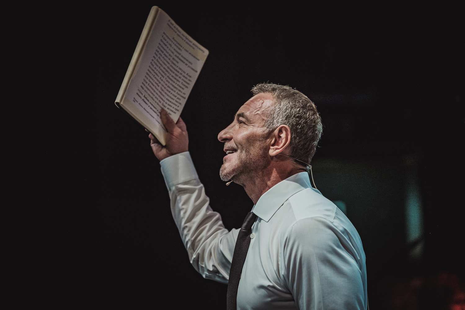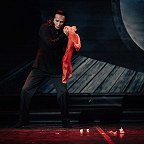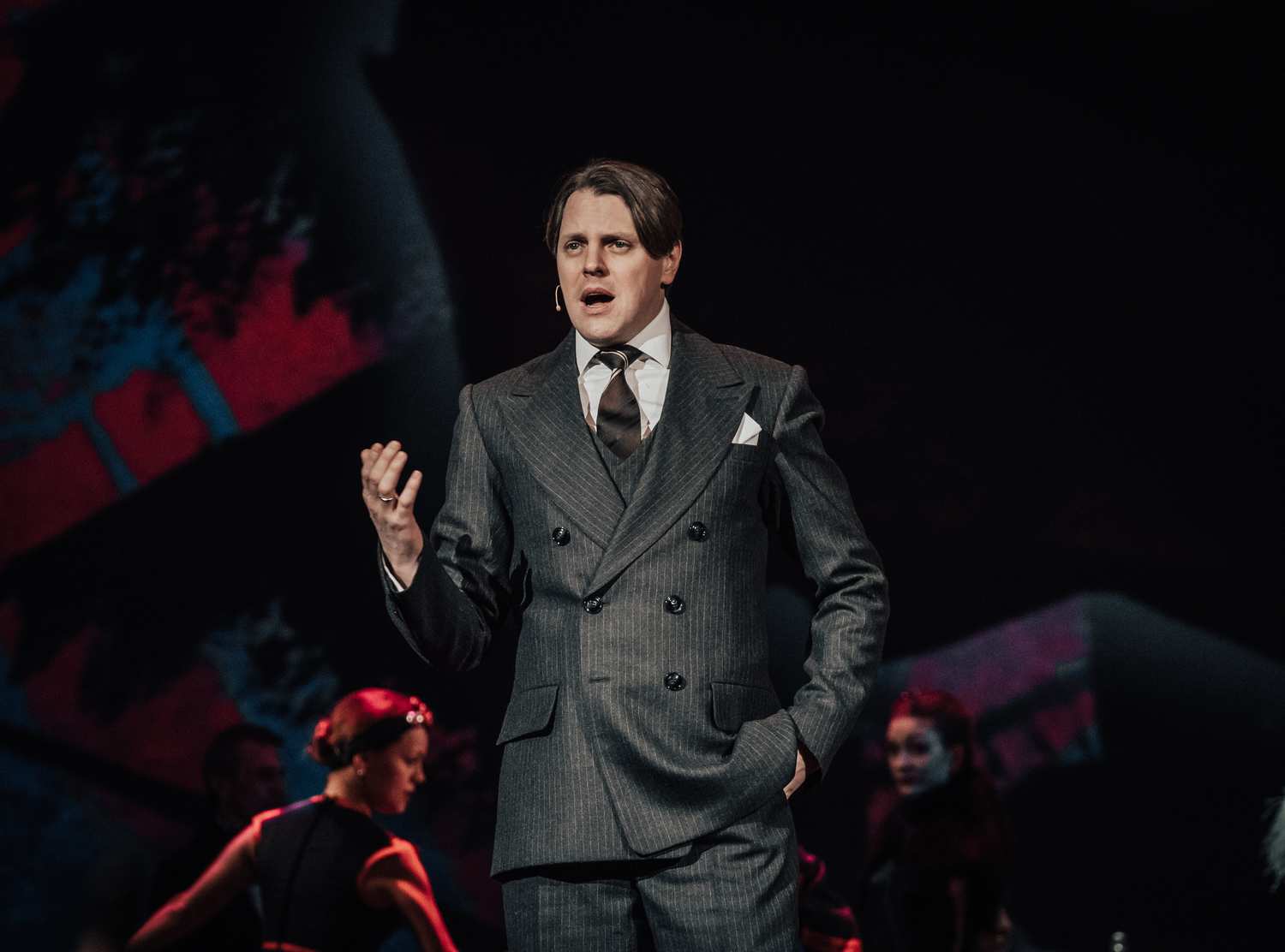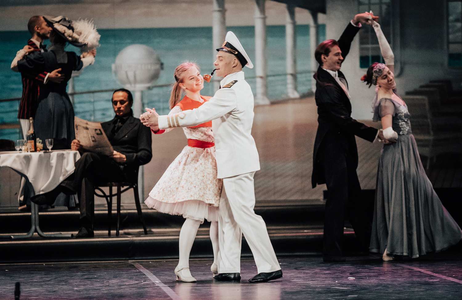 На сцене «Новой оперы» – видео-декорации, рисующие экстерьеры и интерьеры огромного лайнера на фоне океанических пейзажей, и костюмная феерия (140 разнородных комплектов!). В актерской команде сплошь звезды. Среди танцующих – премьеры Михайловского театра Ирина Перрен и Марат Шемиунов. В главных ролях – Анатолий Белый и Катерина Шпица (актер был абсолютно на месте, актрисе явно лирического склада преображение в волевую, магнетическую Сац не далось). Роль соглядатая Кротова отдали гениальному Фаруху Рузиматову, но беда: сколько-нибудь убедительного образа для него не нашли. Текста в спектакле немного, танцев в постановке режиссера и хореографа спектакля Николая Андросова в изобилии. Что ж музыка?