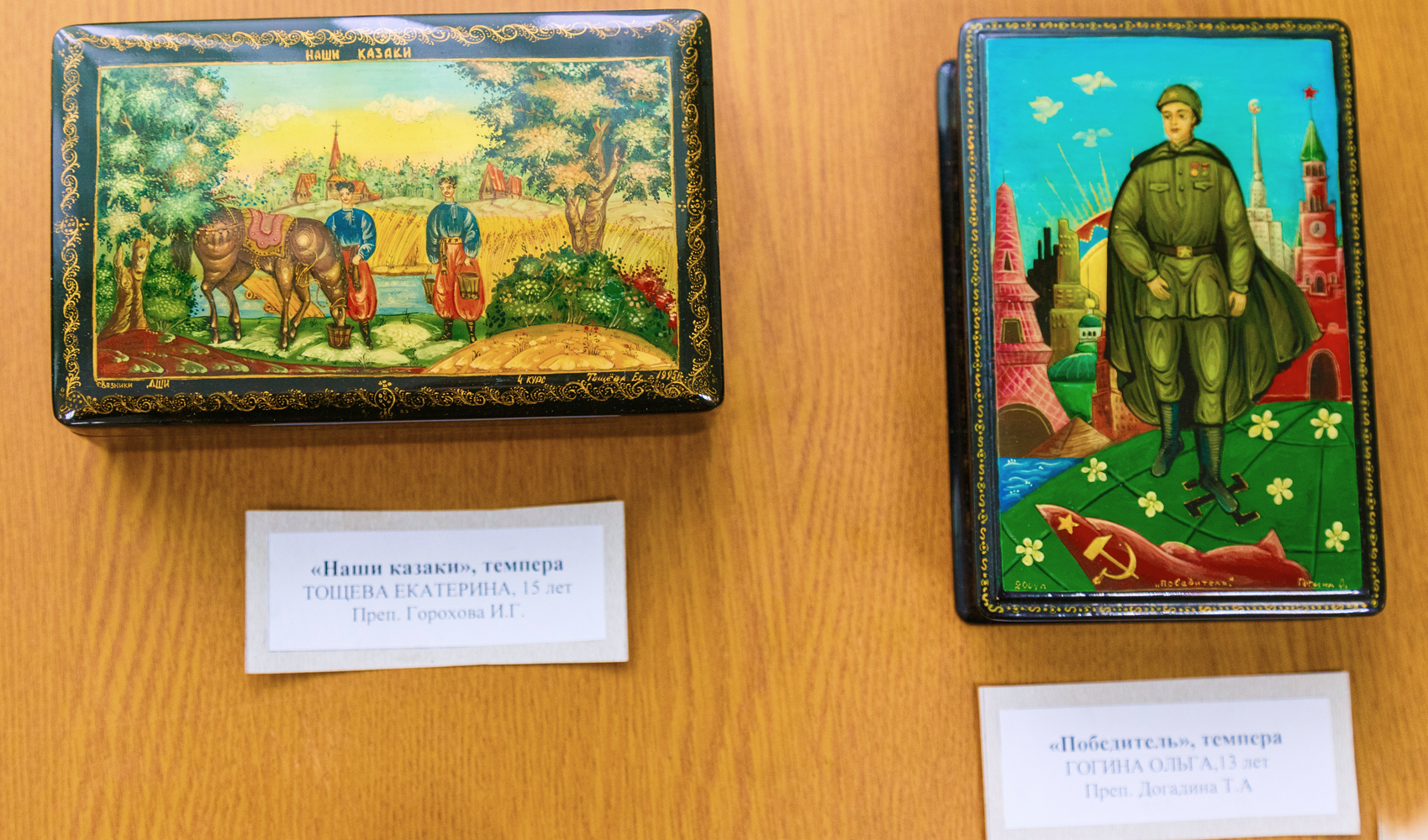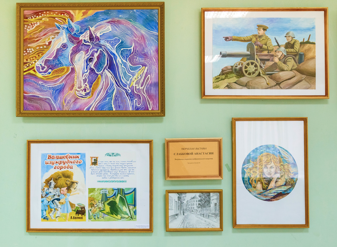 В выставке «Мы этой памяти верны» свои работы представили и учащиеся, и преподаватели. Также наши художники участвовали в посвященной военной тематике выставке в историко - художественном музее нашего города.