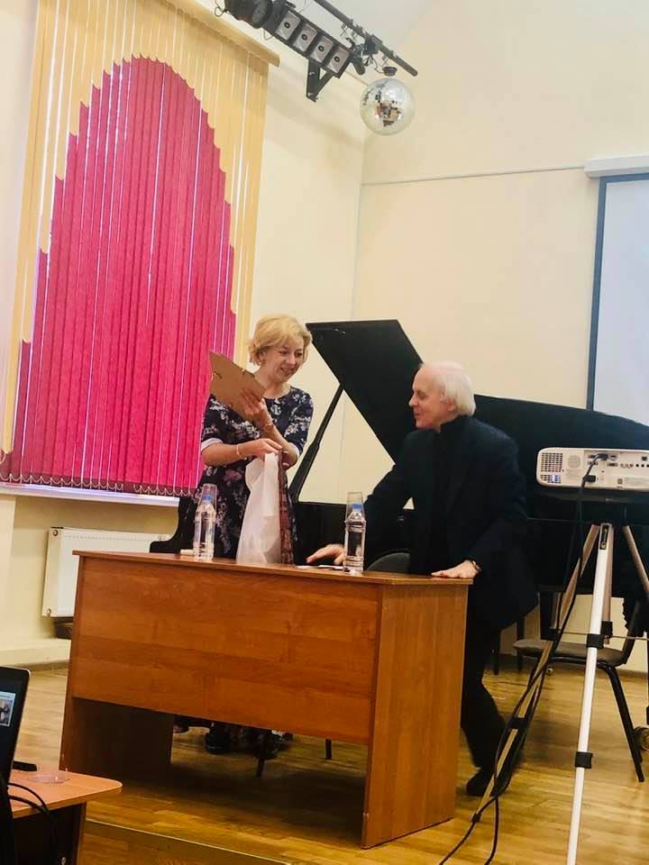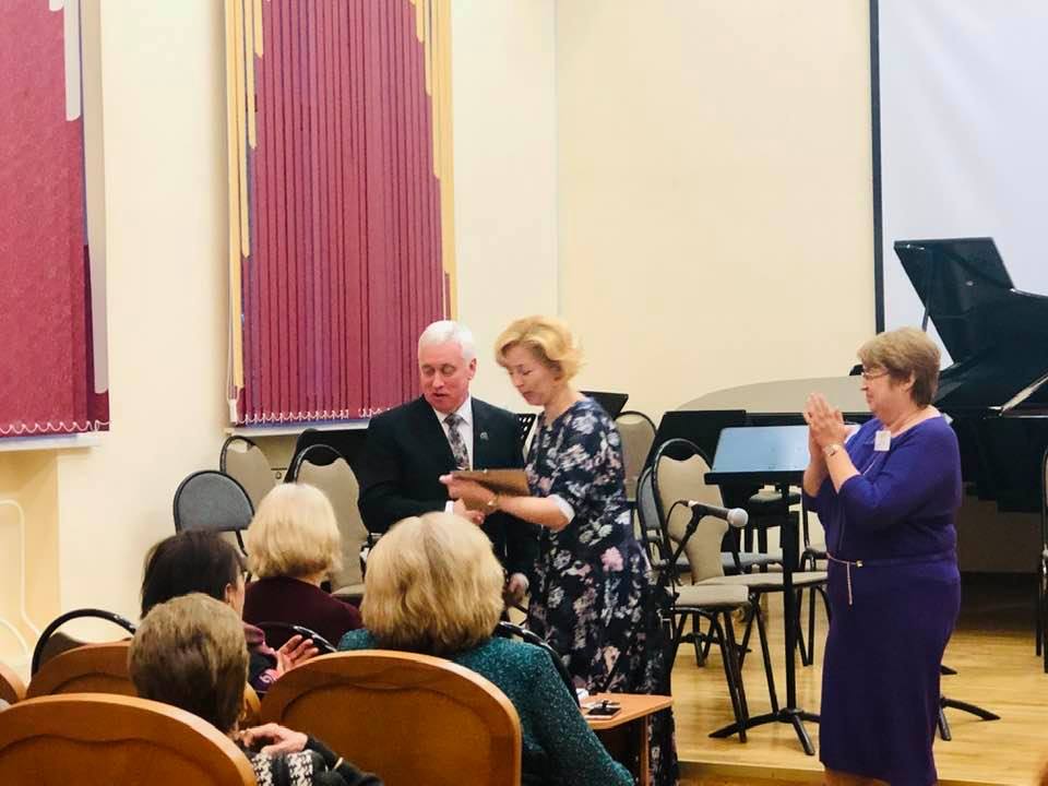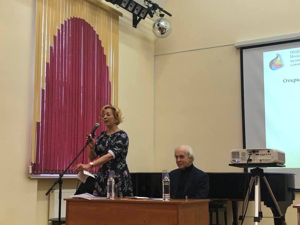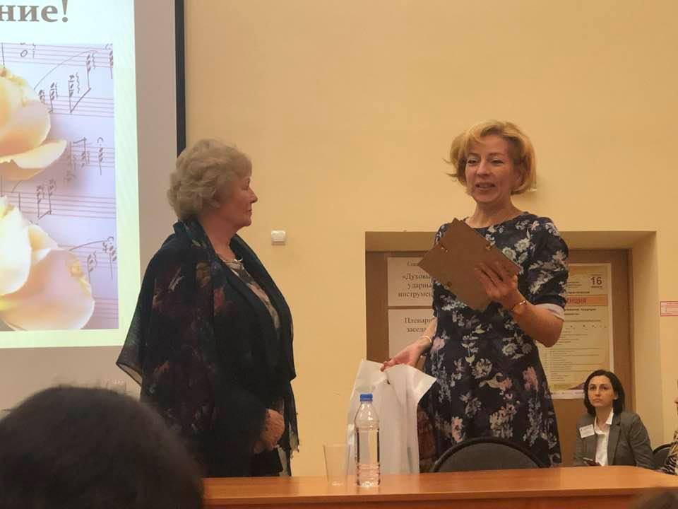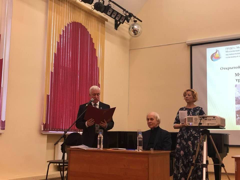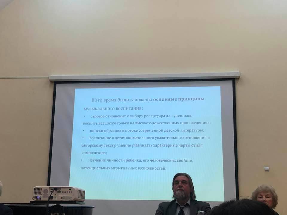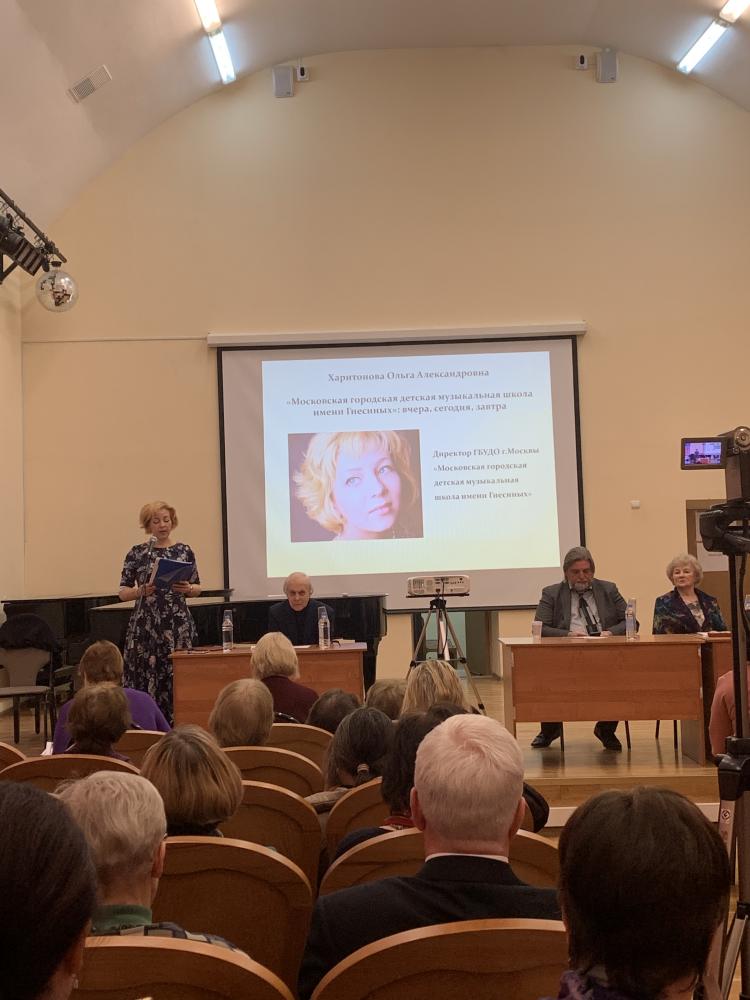 В Большом зале МГДМШ имени Гнесиных прошло пленарное заседание, которое вызвало большой интерес со стороны слушателей. После краткого вступительного слова директора школы О.А. Харитоновой, участников конференции поприветствовал Заслуженный работник культуры РФ, профессор, доктор культурологи В.А.Есаков .Содержательное, глубокое, яркое выступление директора школы О.А. Харитоновой на тему «Московская городская детская музыкальная школа имени Гнесиных»: вчера, сегодня, завтра» сопровождалось видео-презентацией. Педагоги старшего поколения смогли вновь прикоснуться к истории, что, конечно, не могло оставить их равнодушными. Интереснейший рассказ В.М. Тропа «Школа им. Гнесиных: идеальный образец подготовки профессиональных музыкантов» задел всех за живое: в нем содержались удивительные подробности жизни школы во времена, когда она располагалась в старом здании на Собачьей площадке, а ее основателями, сёстрами Гнесиными, создавалась неповторимая атмосфера творческой семьи внутри школы. Многие детали рассказа раскрывали секреты успеха и долголетия школы. Выступление И.М. Анастасьевой «Актуальные проблемы педагогические процесса в классе ансамблевых дисциплин» затрагивало актуальные проблемы музыкального образования не только в классе ансамблевых дисциплин: был также сделан анализ общих проблем, с которыми сталкивается музыкальное образование в современных условиях. Яркое, впечатляющее выступление В.А. Гроховского «Влияние джазовой музыки на формирования исполнительского стиля»на высоком эмоциональном подъёме завершило работу пленарного заседания. Валерий Александрович коснулся вопросов, связанных с формированием исполнительского стиля в современном музыкальном пространстве, что, несомненно, было интересно всем участникам пленарного заседания.