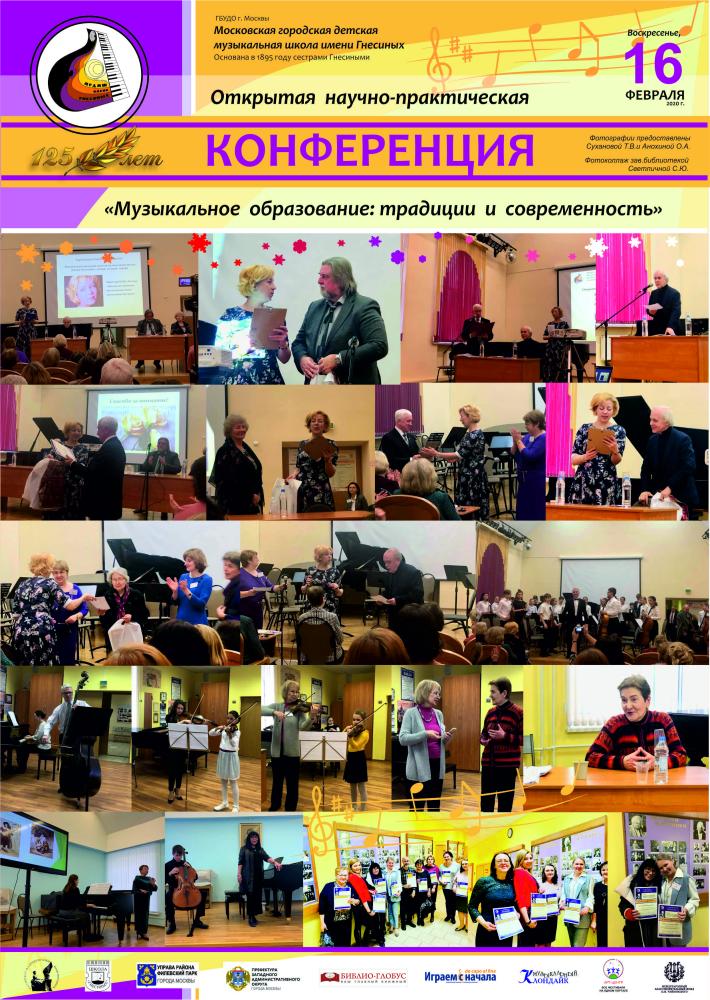 Исследованию этих вопросов и была посвящена Открытая научно-практическая конференция «Музыкальное образование: традиции и современность».Участников встречали тепло: гости имели возможность отдохнуть с дороги, попить чай или кофе, прогуляться по школьным коридорам, познакомиться с историей школы, рассмотрев фотографии, вспомнить знаменитых выпускников, информация о которых была представлена на стендах. Присутствующие имели возможность увидеть видео-записи выступлений учеников на концертах в самых престижных залах столицы, в том числе, и в БЗ МГК им. П.И. Чайковского. А также прикоснуться к истории МГДМШ им. Гнесиных, просмотрев яркую, запоминающуюся видео-презентацию, оформленную педагогом школы Е.А. Кайдановской.