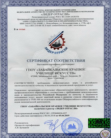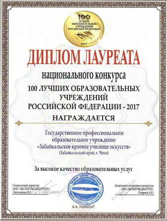 По итогам 2017 г. училище стало победителем Национального конкурса «100 лучших образовательных учреждений РФ». В 2018 г. учреждение получило Сертификат «Лидер отрасли», в 2019 г. вошло в Топ-10 лучших профессиональных учреждений Забайкальского края по результатам мониторинга Минобразования РФ и ГИВЦ. И это наглядно подтверждает высокий уровень качества образования и то, насколько высоко поднята профессиональная планка.