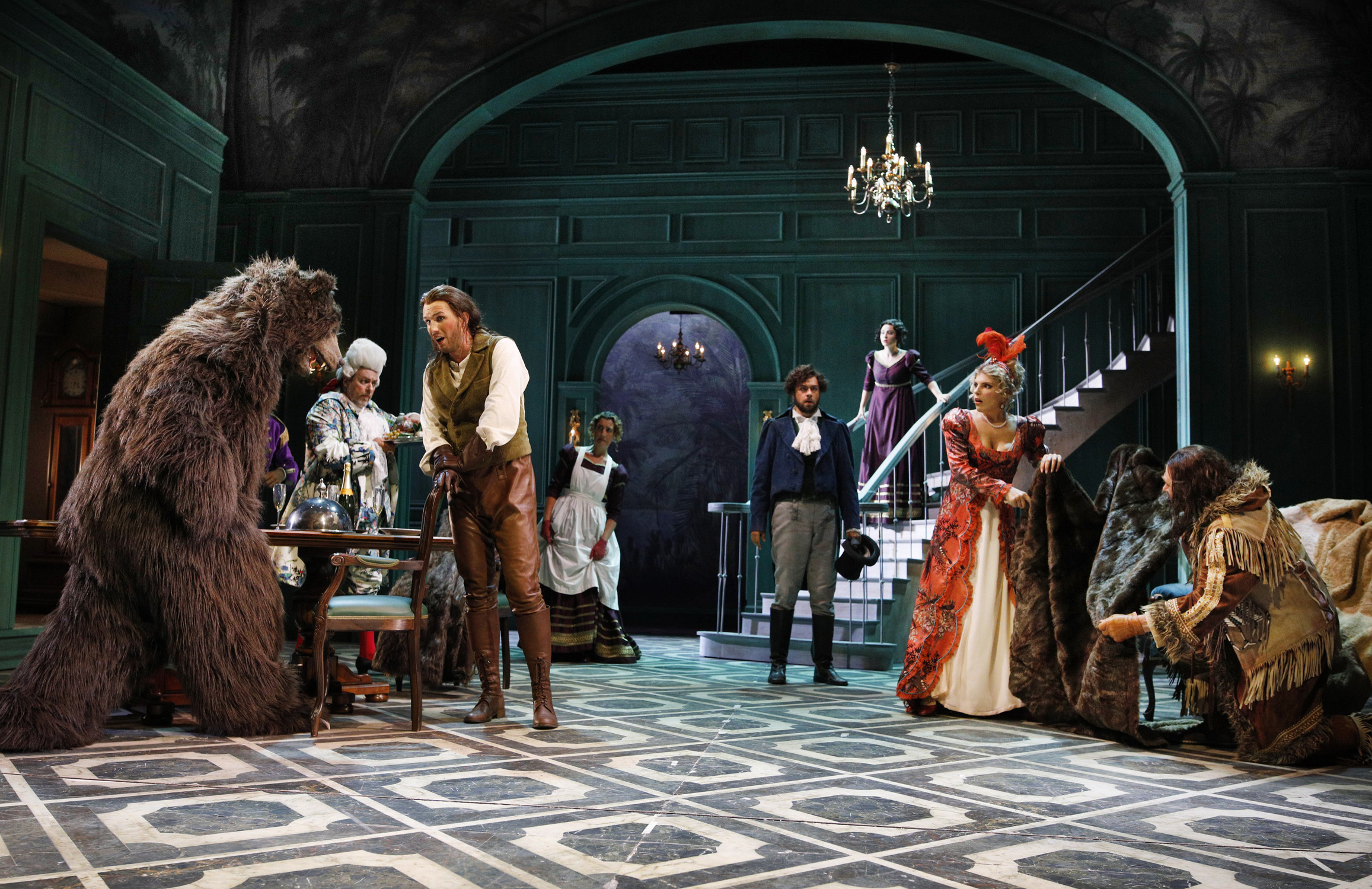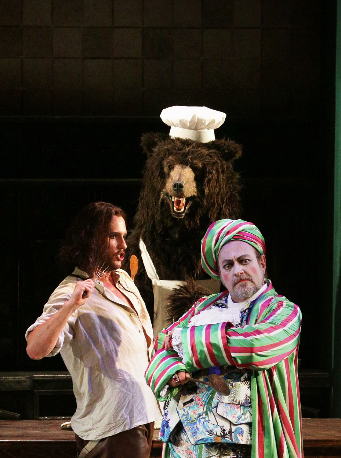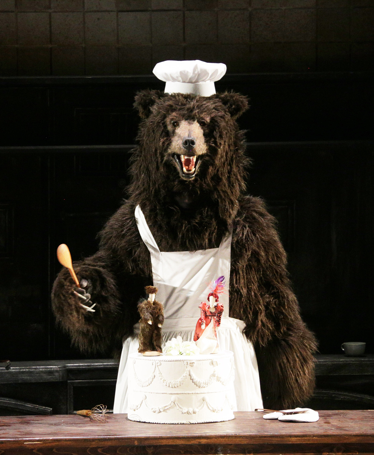 Экстравагантного в спектакле нет почти ничего. Ну разве что восточный «прикид» Тоби в начале да колоритные спутники Слука – огромный бурый мишка и эффектный слуга-индеец. Оба мимических персонажа изрядно веселят публику.