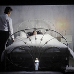 Перформансы на громадном экране доминировали над тем, что происходило на сцене в последние часы жизни Каллас в ее парижской квартире на авеню Жорж Мандель, 36. Каллас – Абрамович лежала в кровати, певицы, одетые в одинаковые платья горничных, по очереди выходили петь свои арии, а в финальной сцене «настоящей» смерти Марии (примадонна просто исчезает, уходит со сцены непонятным образом), они же появились, чтобы пропылесосить, переменить белье и так далее. Баварская опера смогла пригласить вполне перспективных молодых исполнительниц, которых будет приятно слушать в контексте мощных перформансов Абрамович. Порадовала румынка Адела Захария в роли Лючии, австралийка Лорен Фэган с арией Нормы, также выделилась юная кореянка Хера Хьесанг Парк-Виолетта.