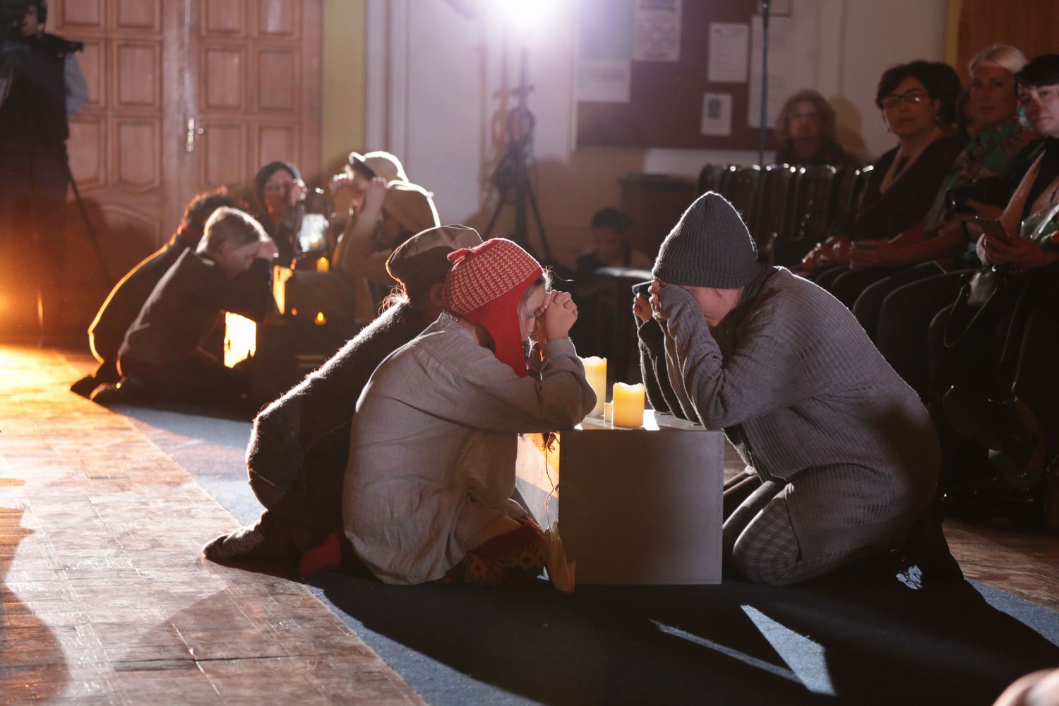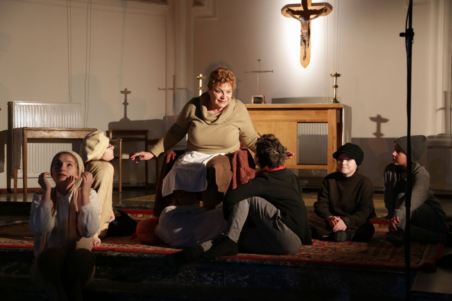 В оригинале Менотти действие происходит в XIV веке, но режиссер Анна Салова перенесла его в 1940-е годы, в послевоенную Англию. Сюжет оперы-притчи вполне выдерживает перенос: бедность и беспризорность – две проблемы, которые терзали туманный Альбион что в Средневековье, что после Второй мировой. В остальном постановка не содержит никакой противоречивой концепции, добротно иллюстрируя партитуру Менотти. При этом режиссеру удалось поставить спектакль очень живой, трогательный и глубокий, хотя и простой по средствам выразительности. Минимум реквизита, драные вязаные одежды на обитателях сиротского приюта святого Исидора (сценограф Анжелика Кременецкая), естественные движения, следующие изгибам мелодики, и логичные мизансцены, задействующие все пространство англиканского храма. Основная вертикаль экшена – путь от входа в храм к алтарной части: именно на этой, словно натянутой струне, линии, к тому же высвеченной яркими прожекторами (художники по свету Иван Клопов и Сергей Графов), происходит все основное в драме. Сюжет же незатейлив, но страшен: сирота Мартин обделен лаской в приюте, поэтому, когда чужой мужчина говорит ему, что он его отец (а на самом деле – преступник, скрывающийся в храме от полиции), Мартин, поверив ему, готов ради него пожертвовать всем, даже жизнью.