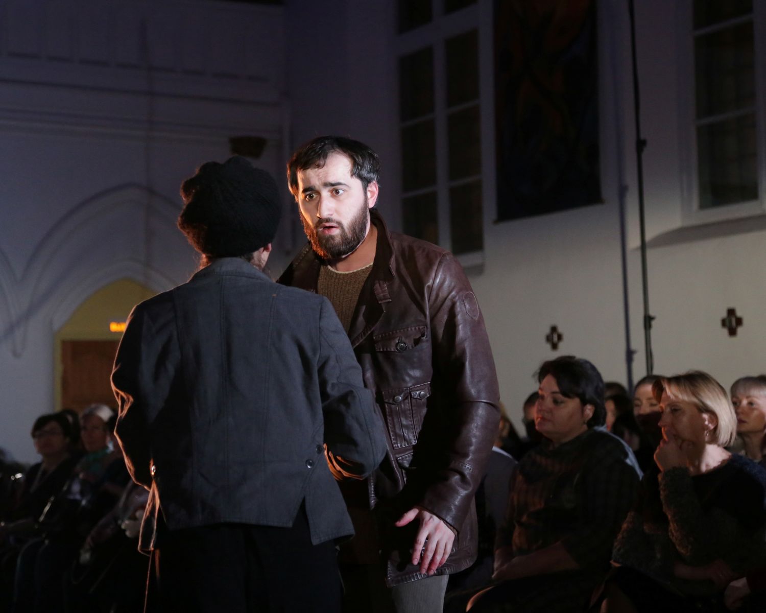 Это всего лишь четвертая постановка в мире – опус, созданный для фестиваля в английском Бате, оказался не слишком востребованным. Возможно, причина в особых условиях, которые композитор предписал для его сценического воплощения: исполнять в церкви. Мировая премьера прошла в свое время в Бристольском соборе, хотя были опыты постановки «Лжи Мартина» и в привычных условиях. «Амадей» для своей версии выбрал идеальное пространство – Англиканский собор святого Андрея в Вознесенском переулке. Визуально это настоящая английская церковь, как раз то место, что предписано автором согласно либретто, а акустически – одно из самых благодатных мест, ведь неслучайно в советское время именно там располагалась студия грамзаписи «Мелодия» да и сегодня нередко проходят концерты классической музыки.