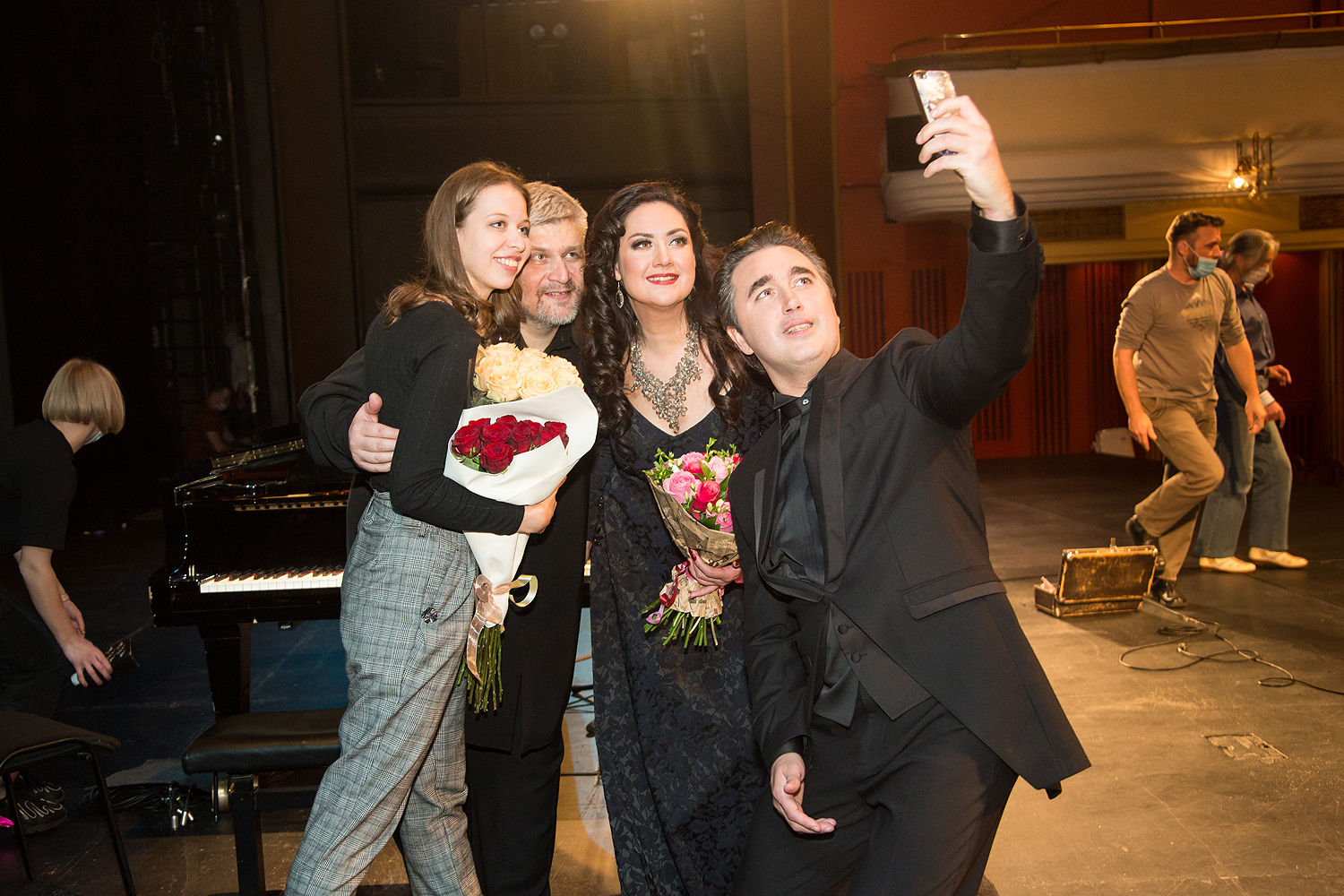 Порадовали артисты и дуэтным пением: в первом отделении это был романтически-пафосный «Как нежить ты, серебряная ночь...» Танеева и торжествующе-гимнический «Рассвет» Чайковского. В финале на бисах – романс Глинки «Не искушай» (пара посвятила его памяти Ирины Архиповой и Владислава Пьявко) и совсем в конце – игривый «Ванька-Танька» Даргомыжского. Бесподобное слияние голосов, таких, с одной стороны, близких (меццо-сопрано и лирический тенор), с другой, обладающих уникальными характеристиками (сверкающий звон у тенора и пастозная томность у меццо), вызывало настоящий восторг.