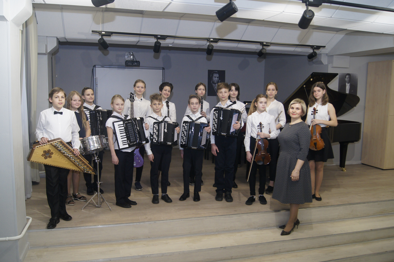 Ровесником школы является и отделение народных инструментов. В настоящее время на отделении проводится обучение по 6 специальностям: аккордеон, баян, домра, гусли, гитара, скрипка. В 2019 году на отделении появился ансамбль народных инструментов: несмотря на молодость, коллектив уже завоевал сердца слушателей и множество престижных наград, среди которых лауреатство на Х открытом Российском конкурсе юных исполнителей «Музыкальная табакерка», II Московском открытом фестивале смешанных ассамблей «Петровские встречи». Руководитель ансамбля - заведующая народным отделом Светлана Викторовна Венедиктова.