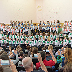 А начало эта большая «хоровая история» традиционно берет на концерте для учащихся 1-х классов «Посвящение в музыканты»: на свет появляется новый коллектив – хор только поступивших в ДМШ малышей. С самых первых шагов в музыкальном искусстве у ребят закладываются навыки хорового пения, прививается любовь к песне, интерес к музыке разных эпох и народов. Неудивительно, что выступления самых маленьких артистов всегда вызывают неподдельный восторг у слушателей. Руководит хором заведующая теоретическим отделом талантливый хормейстер Наталья Викторовна Афанасьева, концертмейстер Евгения Викторовна Седова.