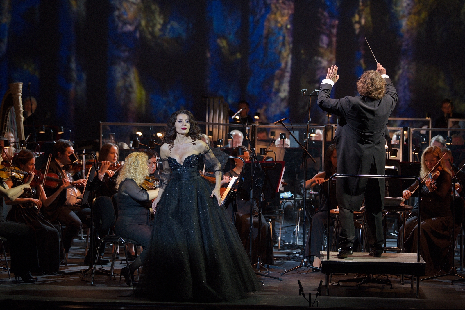 Партнерами Мавлянова в концерте выступили солистки МАМТ – меццо Лариса Андреева, сопрано Наталья Петрожицкая – и баритон Мариинского театра Роман Бурденко. Помимо ансамблевых номеров каждый из них исполнил по арии. Лариса Андреева блеснула ярким верхним регистром в арии Принцессы Буйонской из «Адриенны Лекуврёр», а Наталья Петрожицкая чересчур увлеклась пианиссимо в арии Луизы из одноименной оперы Шарпантье. Идеальным вокалистом предстал Бурденко, чье владение голосом абсолютно, а тембр воистину золотой. Он спел трудную и не очень выигрышную арию Карлоса из «Силы судьбы» – так, что буквально взорвал зал. Наибольшей гармонии в ансамблевых номерах солистам удалось добиться в дуэтах из «Силы судьбы» и «Отелло» (оба спели Мавлянов и Бурденко), а также в хитовой Баркаролле из «Сказок Гофмана» (Петрожицкая и Андреева). А вот терцет из «Эрнани» получился не слишком убедительным – были и небольшие помарки с синхронностью, и явное несоответствие «весовой категории» сопрано для партии Эльвиры.