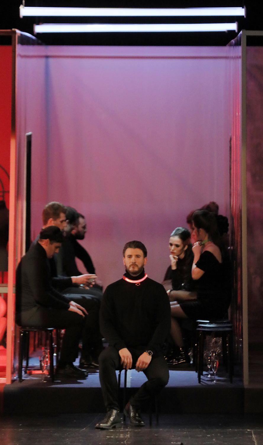Конечно, зная сюжеты и музыку, мы кое-что понимаем, можем домыслить, вспомнить или угадать, но в целом постановка лишена элементарной логики. К тому же герои из трех разных опер никак не контактируют друг с другом, между ними нет (и не может быть) точек соприкосновения – три группы существуют сами по себе, но и «среди своих» персонажи лишены многого. Прежде всего – причинно-следственных связей, которые здесь очень важны, ведь оперы Моцарта – это не условно-ходульные оперы барокко, где часто не имеет значения, какую арию в каком месте исполнять и как перекроить сюжет.