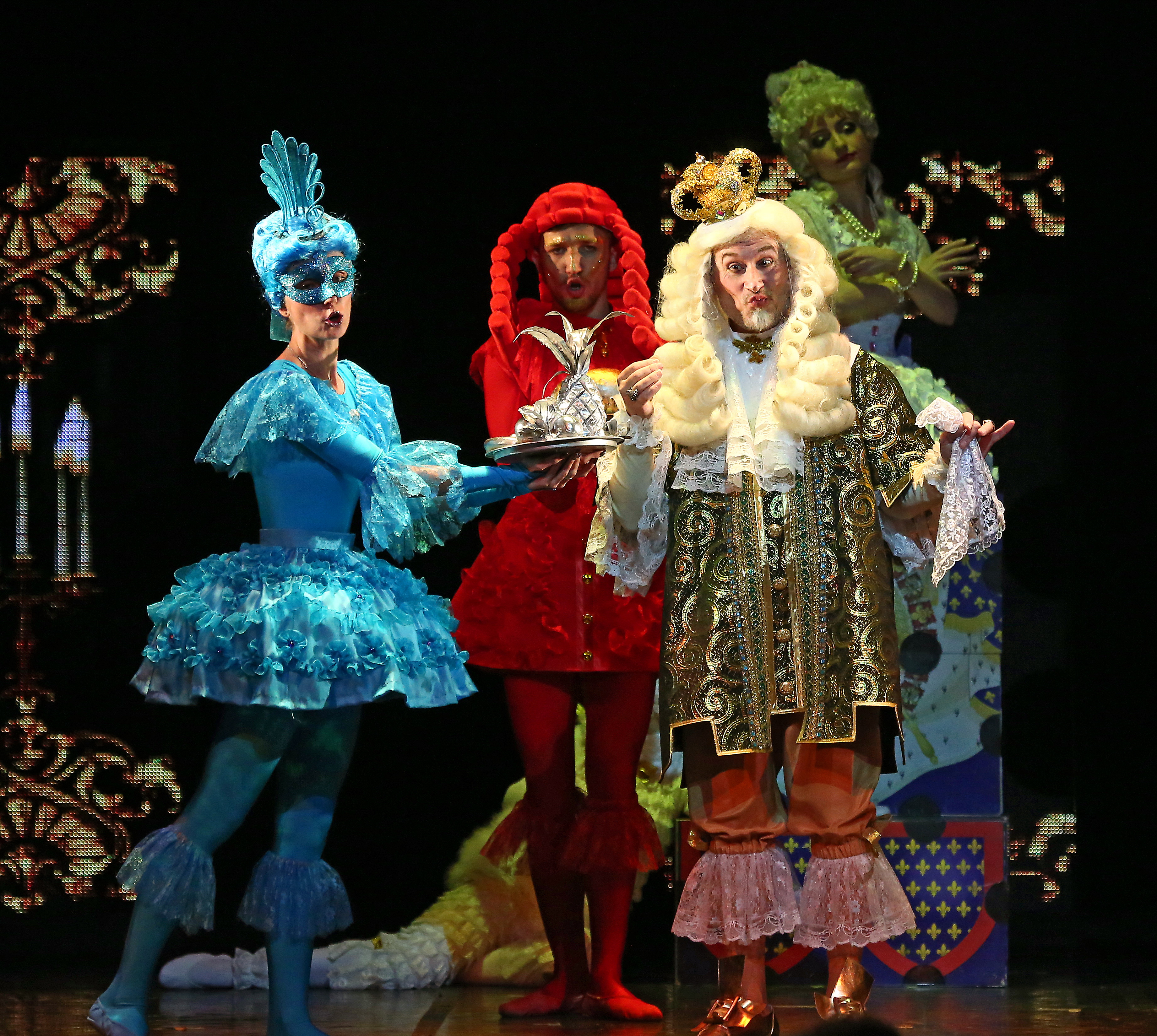 Режиссер Александров не забывает и про интерактив: герои оперы периодически оказываются в зале и ведут прямой диалог с маленькими зрителями – особенно активен все тот же Кот. Ну и, конечно, самая сильная сторона театра – актерская. Образы продуманы скрупулезно. Например, Король в исполнении Виктора Алешкова – стопроцентно узнаваемый Эраст Гарин из советского кинофильма «Золушка». Принцесса Каролины Шаповаловой – весьма современная девица, только для вида надевшая платье с кринолином. Простак Жан, он же маркиз Караба (именно так, без привычной «с» на конце) в исполнении Евгения Наговицына – Иванушка-дурачок или Емеля с волшебной печки.