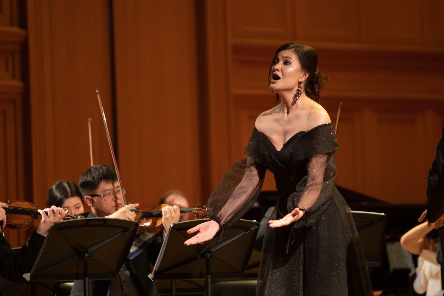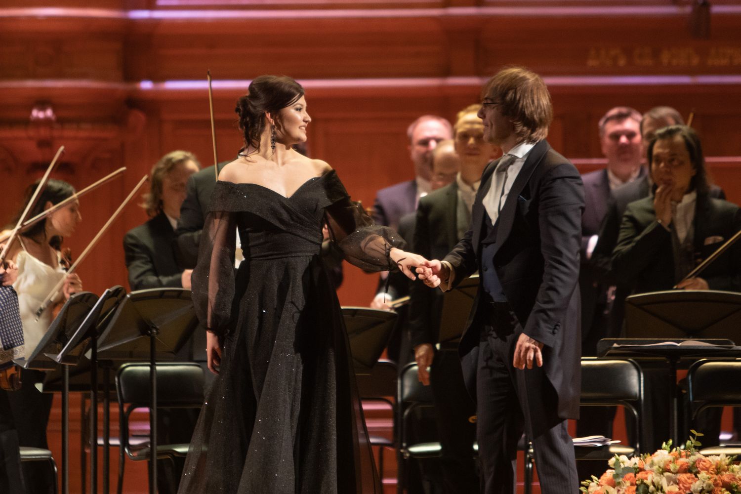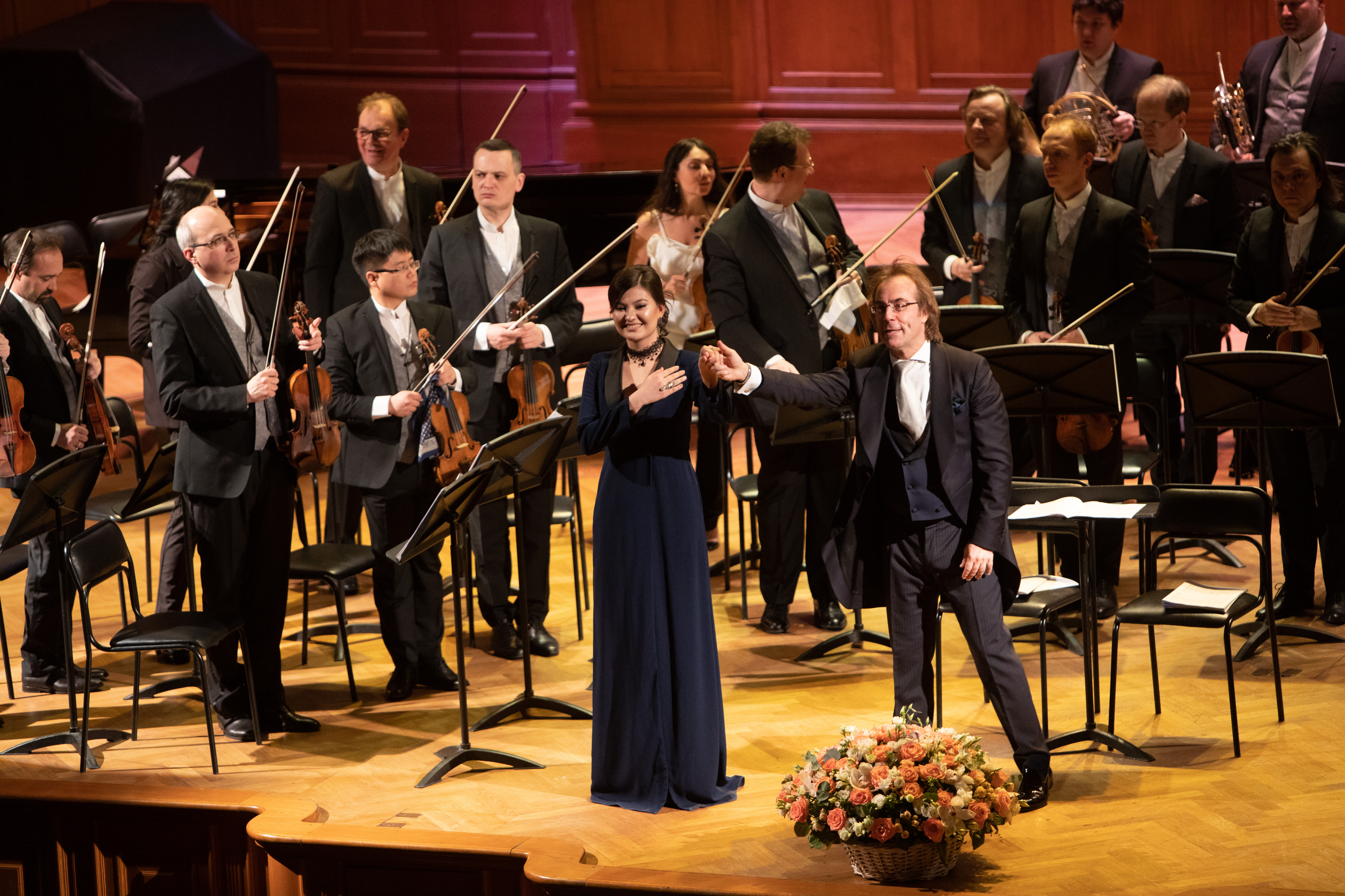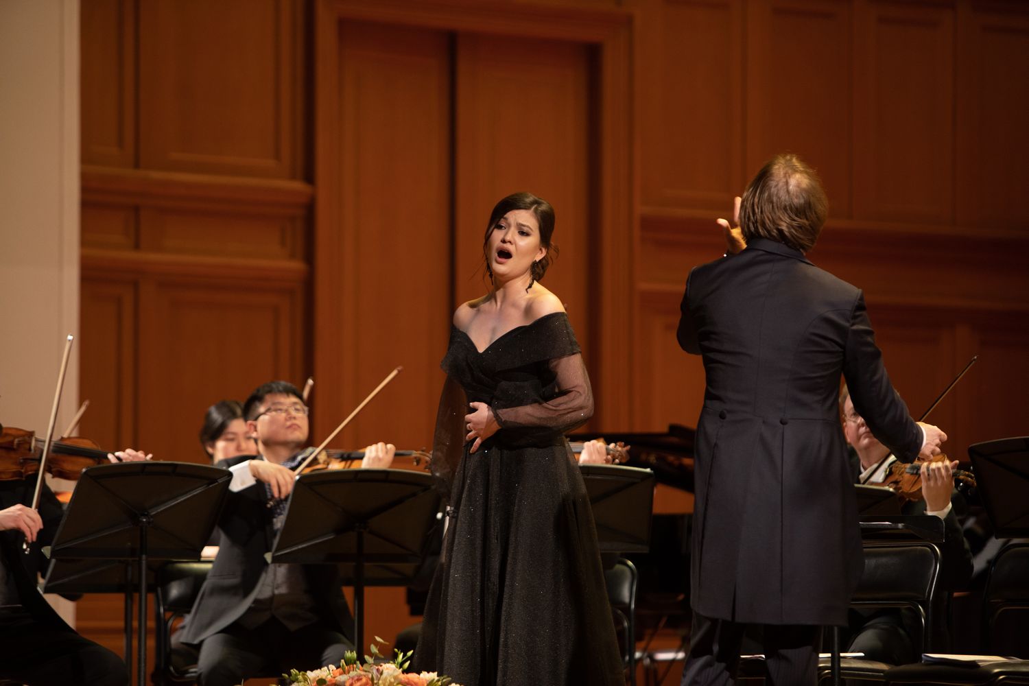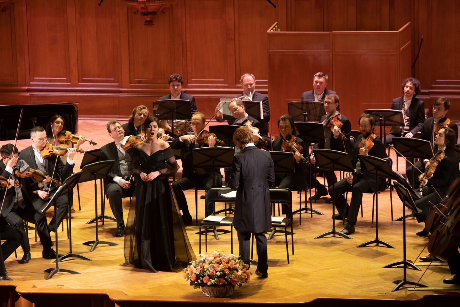 Начало второго отделения было посвящено бельканто первой трети XIX века – были спеты арии из «Золушки» и «Итальянки в Алжире» Россини и хрестоматийная ария Леоноры из доницеттиевской «Фаворитки». И вот тут все было уже не так однозначно. Во-первых, при всей близости к XIX веку, при немалой виртуозности арий Россини и Доницетти это все же другая эпоха и другая музыка. Тут нужно меньше блистательной техники, но больше чувства и умения разнообразно фразировать – с этим певица справляется пока не так совершенно. Барочные арии эмоционально более одномерные – в бельканто нужно больше артистизма в звуке, и над этим стоит еще поработать. Во-вторых, певица просто переоценила свои возможности в плане выносливости. Три развернутые, трудные, поистине изнурительные арии были спеты подряд, и очень чувствовалось, что к Леоноре Ахметшина буквально выдохлась, ей не хватало сил, отчего, например, верхние ноты в кульминациях не получились такими красивыми, как могли бы быть (судя по ариям первого отделения); кроме того, им было присуще утяжеленное, излишне широкое вибрато.