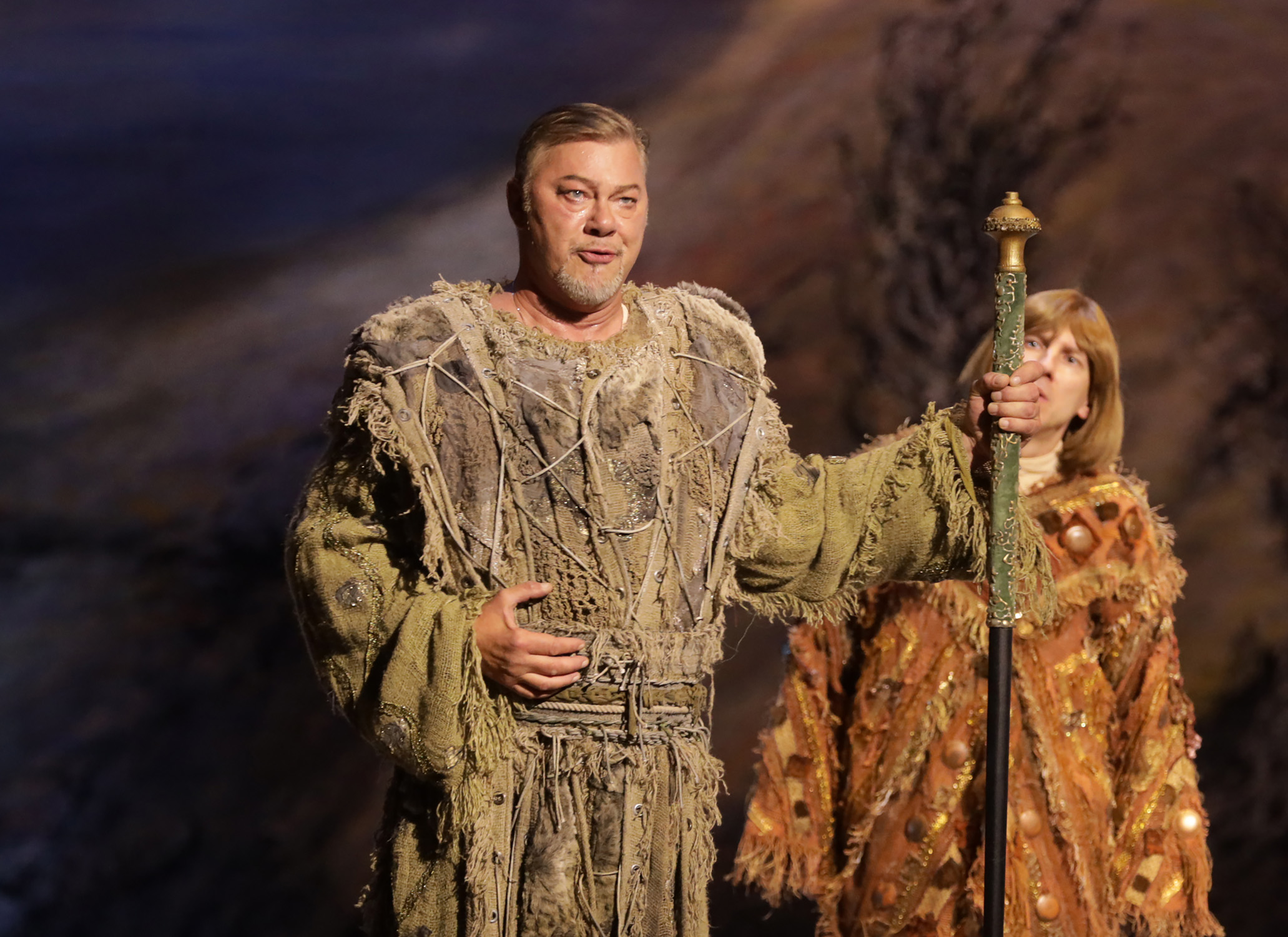 Впечатляющим Амфортасом предстал баритон Алексей Марков – Вагнер его красивому и яркому голосу столь же органичен, как и Верди. Роскошен и Клингзор другого баритона – Евгения Никитина, специализирующегося на вагнеровском репертуаре с большим успехом и убедительностью: его, словно высеченное из камня, резковатое звучание прекрасно гармонировало с фантастическим обликом персонажа (костюмы и грим – Надежда Павлова).