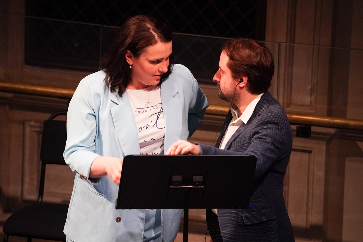 Все кантаты, за исключением «Офелии», написаны для вокала с оркестром. Но в концерте они звучали под фортепиано – как на прослушиваниях Римской премии (к которой кураторы проекта, они же ведущие вечера Илья Кухаренко и Татьяна Белова, возвращались вновь и вновь). Но вот какую хитрость придумал музыкальный руководитель «Кантат» Сергей Константинов: он переложил партитуры для двух фортепиано и пригласил «на подмогу» пианистов Анну Денисову и Михаила Коршунова. Но задачи пианистов оказались неожиданно шире: они сподобились еще и выступить как актеры в кантате Лили Буланже.