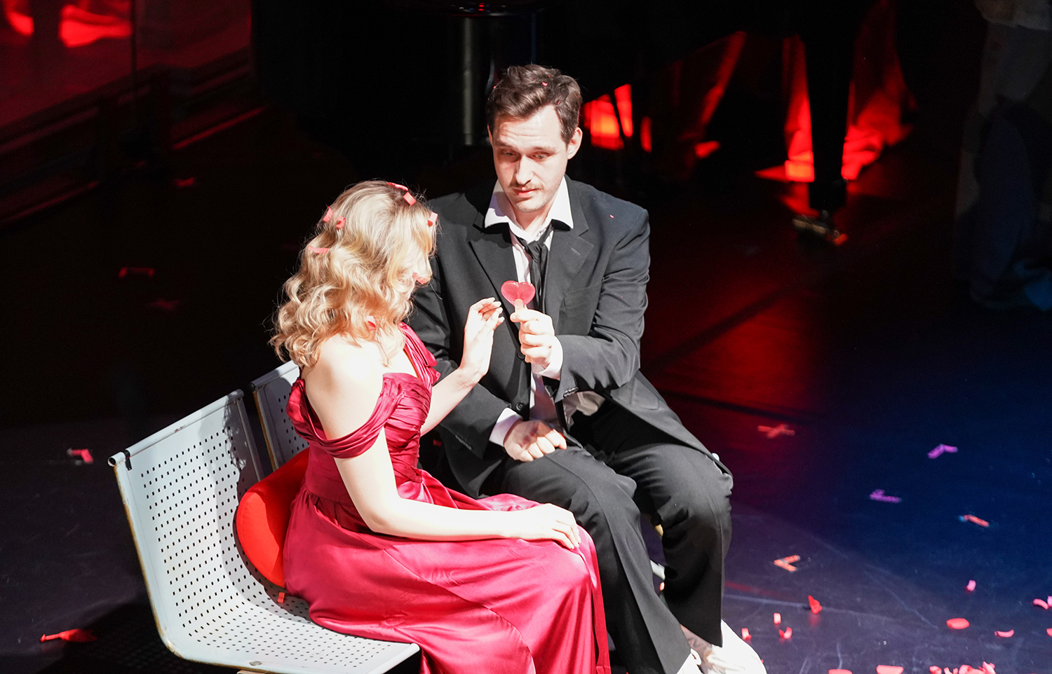 Сюжет прославившей ее кантаты «Фауст и Елена» таков: первый грезит о второй, но даже Мефистофель опасается вызвать из потусторонних пределов Прекрасную Елену – слишком много крови пролилось из-за нее, не прогневить бы Бога (!?). Режиссер Алексей Золотовицкий отказался вообще рассматривать эту историю всерьез. Его путешественник по жизни Фауст, выбираясь из очередного станционного буфета, возвещает компаньону с рожками: «Хочу Елену» (если по-простому). А далее какую-то подобранную в зале мумифицированную старушку две искусницы из салона красоты превращают в аппетитную блондинку. Но не срастется у Фауста с Еленой: уж было…, как блондинку вновь унесут в тартарары вокзальные стражи порядка, ремонтники и примкнувшие к ним сомнительные личности. Комедия, выписанная в массе визуальных эффектов, вышла на славу. Но менее всего к ее успеху имели отношение певцы Молодежной оперной. Баритон Николай Землянских – Мефистофель актерски еще не разбужен. То же можно сказать о меццо Ульяне Бирюковой, которой в этой компании пришлось труднее всего: волею режиссера ею будут вертеть, как в цирке, так и эдак, и на цельности звуковой волны это скажется. Только сладкоголосый Давид Посулихин сумел вылепить своего Фауста – полного раздолбая, разливающего направо и налево потоки обаяния и не думающего грузиться вопросами морали. Но если придется (в какой другой постановке), то актерских сил, как кажется, ему и на это хватит.
