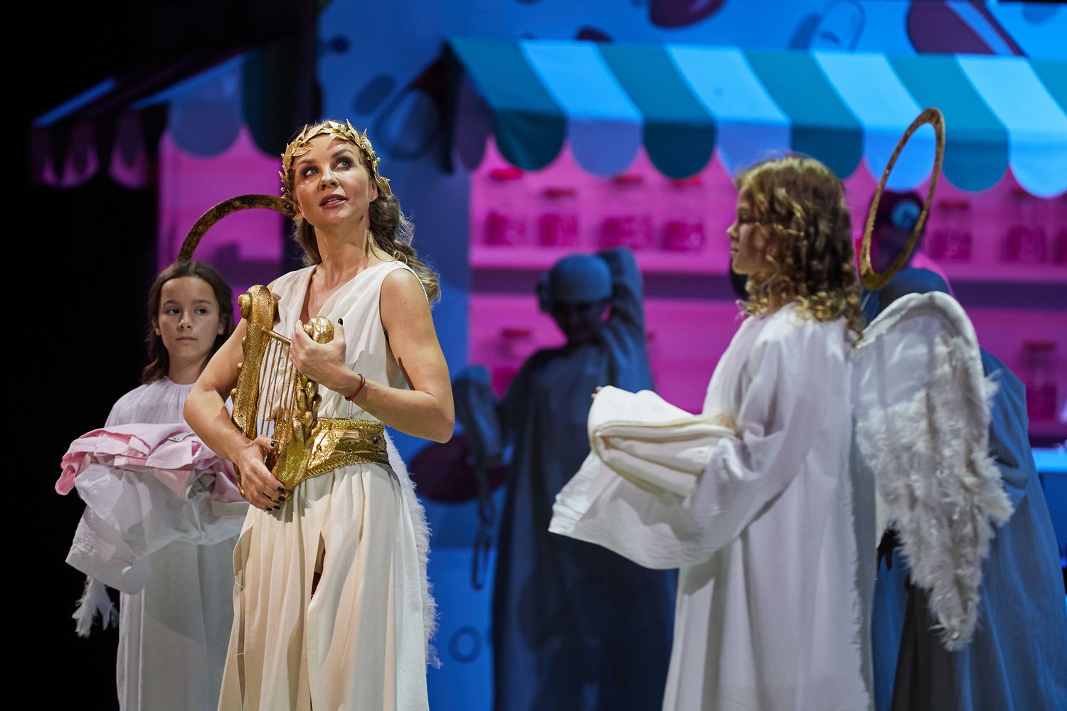 Спектакль длится три с половиной часа, используется практически вся музыка лебединой песни композитора. Нагрузка на хор (хормейстер Константин Рылов) и особенно оркестр – колоссальная, если не изнурительная, но коллективы справляются с ней очень уверенно. Маэстро Кристиан Кнапп методично собирает эклектичную партитуру, убедительно добиваясь целостности звучания и драматического развития.