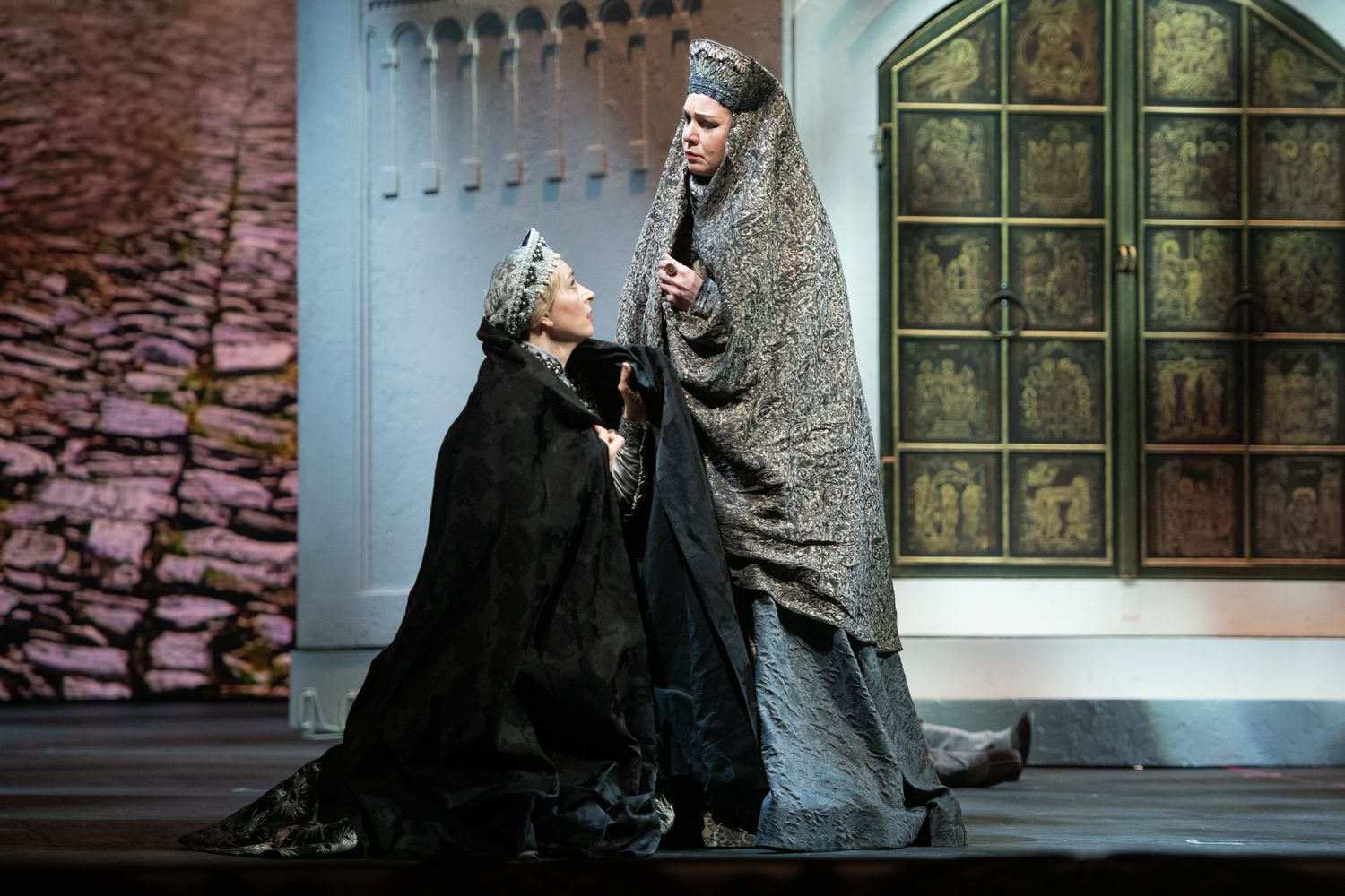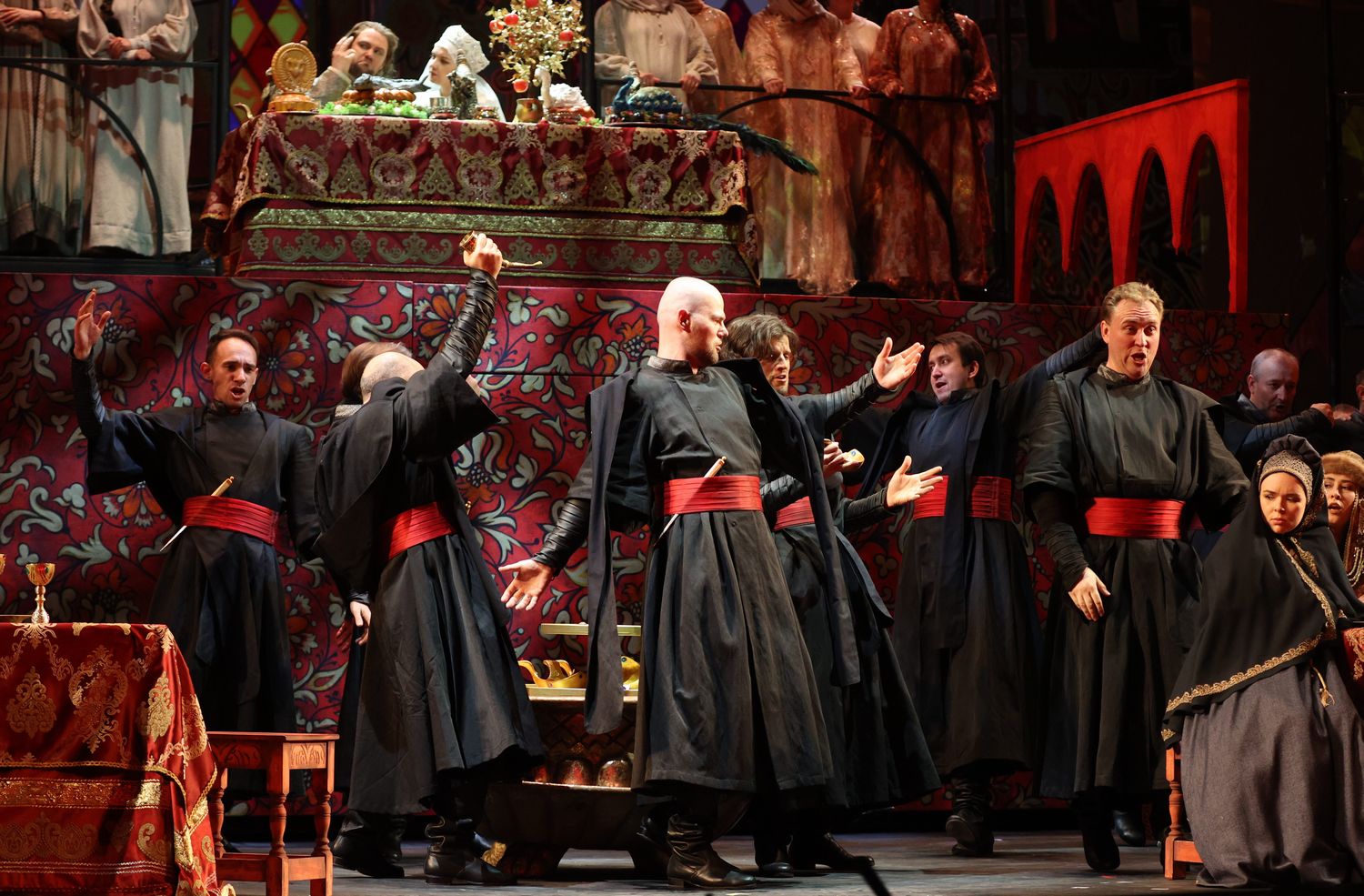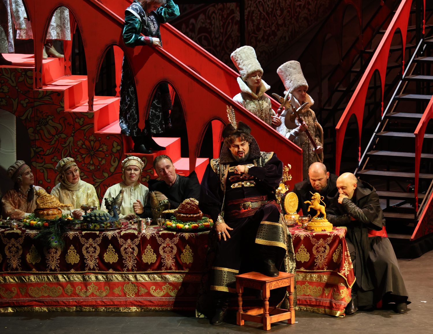 Не устала ли ты, публика, от перекройки оперных оригиналов и приращений смыслов? – читалось в эстетике подарка, преподнесенного столичным театралам (заметную долю которых составлял бомонд). Авторы явно желали следовать букве либретто, велящей поселить героев в XVI веке, разодеть в соответствующие одежды и не заставлять запутавшегося героя-опричника, скажем, стреляться, а его невесту – прыгать в царские перины. Но сегодня при таком настрое лишь пара вариантов обещает сделать предприятие успешным: режиссер создаст тонко нюансированную психологическую партитуру, которую сумеют разыграть актеры, или, наглядевшись отечественных оперных записей 50-60-летней давности, поставит нечто винтажное, источающее аромат эпохи (которая, судя по изобилию фильмов про советское прошлое, на пике интереса). Но ни то, ни другое в спектакле не обнаружилось.